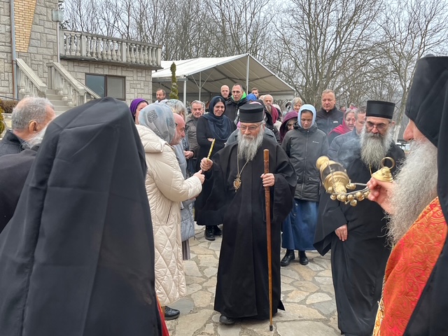 „Ове молитве које смо читали за почетак Нове године, коју вам срдачно честитам, тај вјенац нове доброте, љубави Господње на свима нама. Да нам Господ опрости, као што смо се молили и чули сте, као што је ђакон говорио, да нам Господ опрости сва она нечиста дјела и сагрешења које починисмо у претходној години и да нас утврди и учврсти да идемо право путем Христових заповести у години која нам предстоји, а све то свакако имајући исправну вјеру, имајући чисто срце и прослављајући ове дивне светитеље, имајући њихов примjер пред очима каквог дивног светитеља данас наш Владика Наум прославља као своје Крсно име, као своју Крсну славу. Рјетко се у српском народу прославља, али дивни и предивни светитељ, није случајно да је један од рјетких, није много светитеља у календару који су и добили име велики, а заиста тај велики Василије, архиепископ Кесарије кападокијске, отац цркви, љубитељ хришћана и хришћанства цркве Божије, љубитељ монаштва, посебно дакле и многа правила за монахе остави и вјеру Божију учврсти и утврди и прошири и сачува и пред налетима безбожника и пред налетима јеретика да би се његово велико име пред Богом прослављало и међу нама људима.“