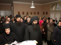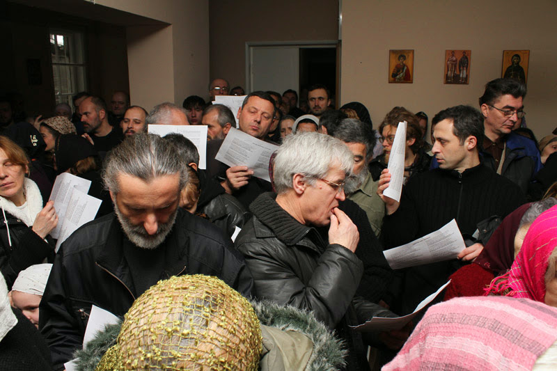 У недељу 6. марта у Београду, у капели посвећеној Преподобном Јустину Ћелијском, одслужена је прва катакомбна Литургија. Свету Литургију је служио настојатељ манастира Црна Река у егзилу Архимандрит Николај уз саслужење Јеромонаха Наума, старешине капеле. Поред прогнаног монаштва из Епархије рашко-призренске Литургији је присуствовало и око 300 верника из Београда и околине. Због ограниченог простора многи од њих су се за време Литургије налазили изван капеле. Хладно време и слаба чујност изван зидина капеле учинили су да се неки од верника, нажалост, врате својим домовима. На крају Литургије верном народу се надахнутом беседом обратио Архимандрит Николај (беседа се налази у прилогу). После Свете Литургије катакомбно братство које опслужује капелу приредило је пригодно послужење за све присутне.