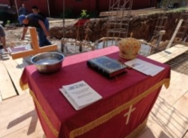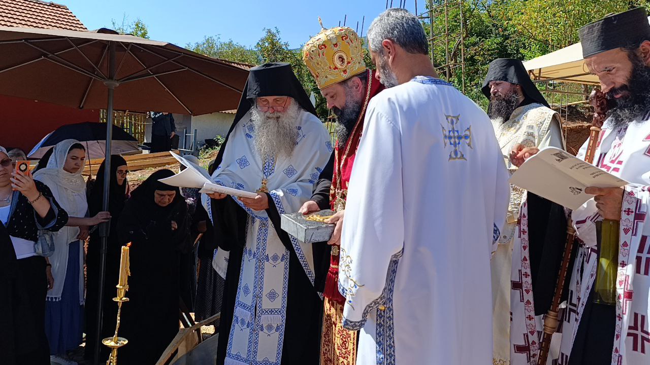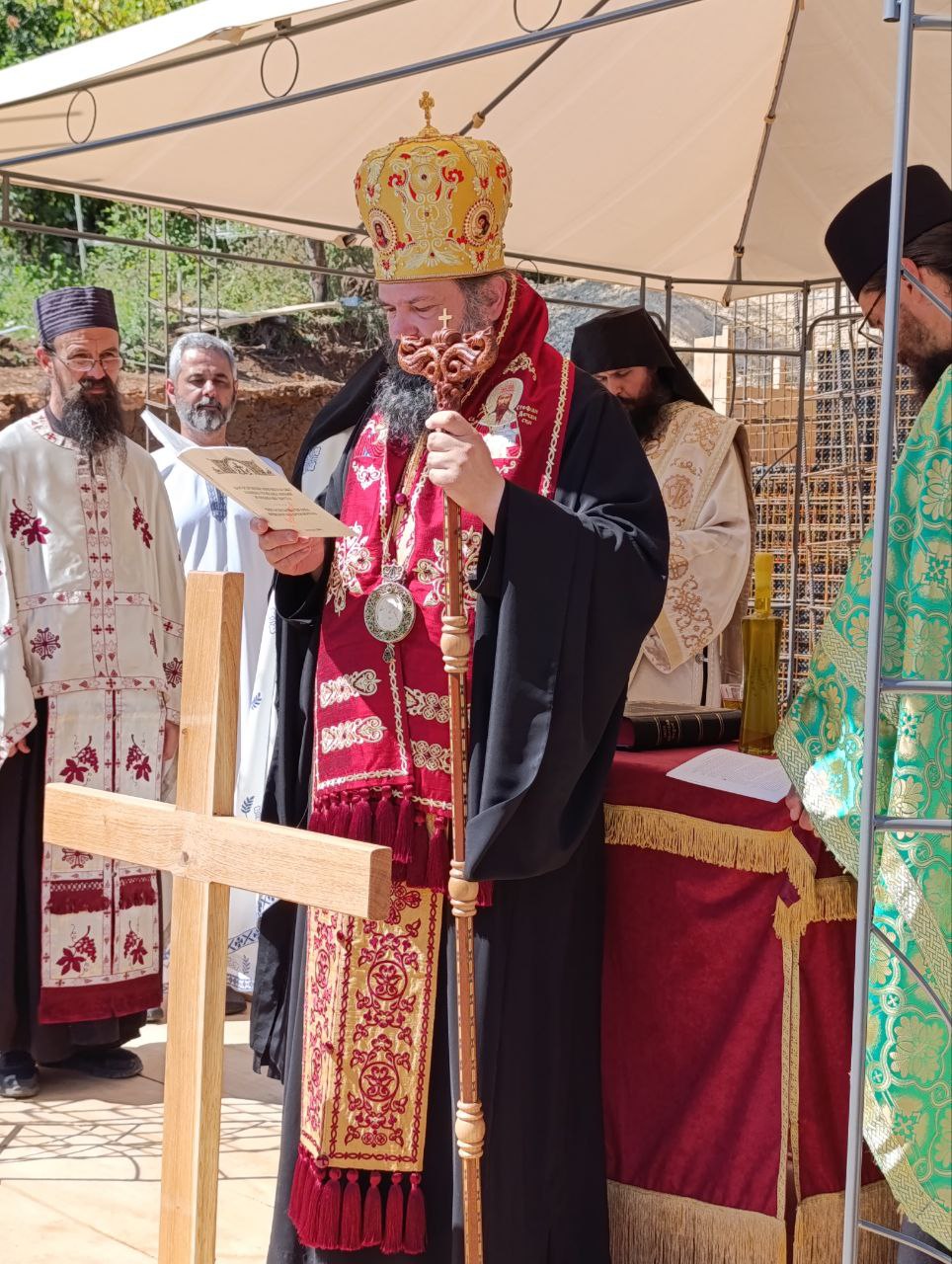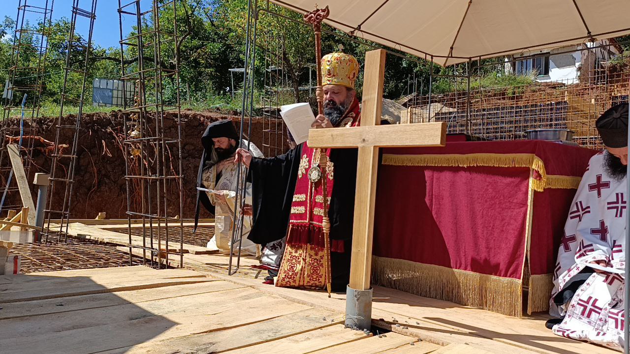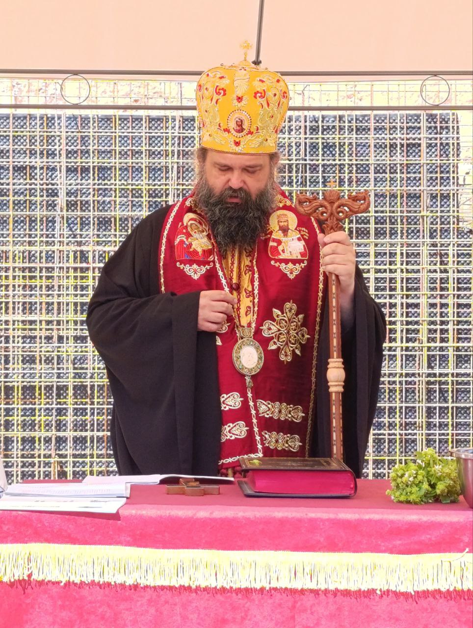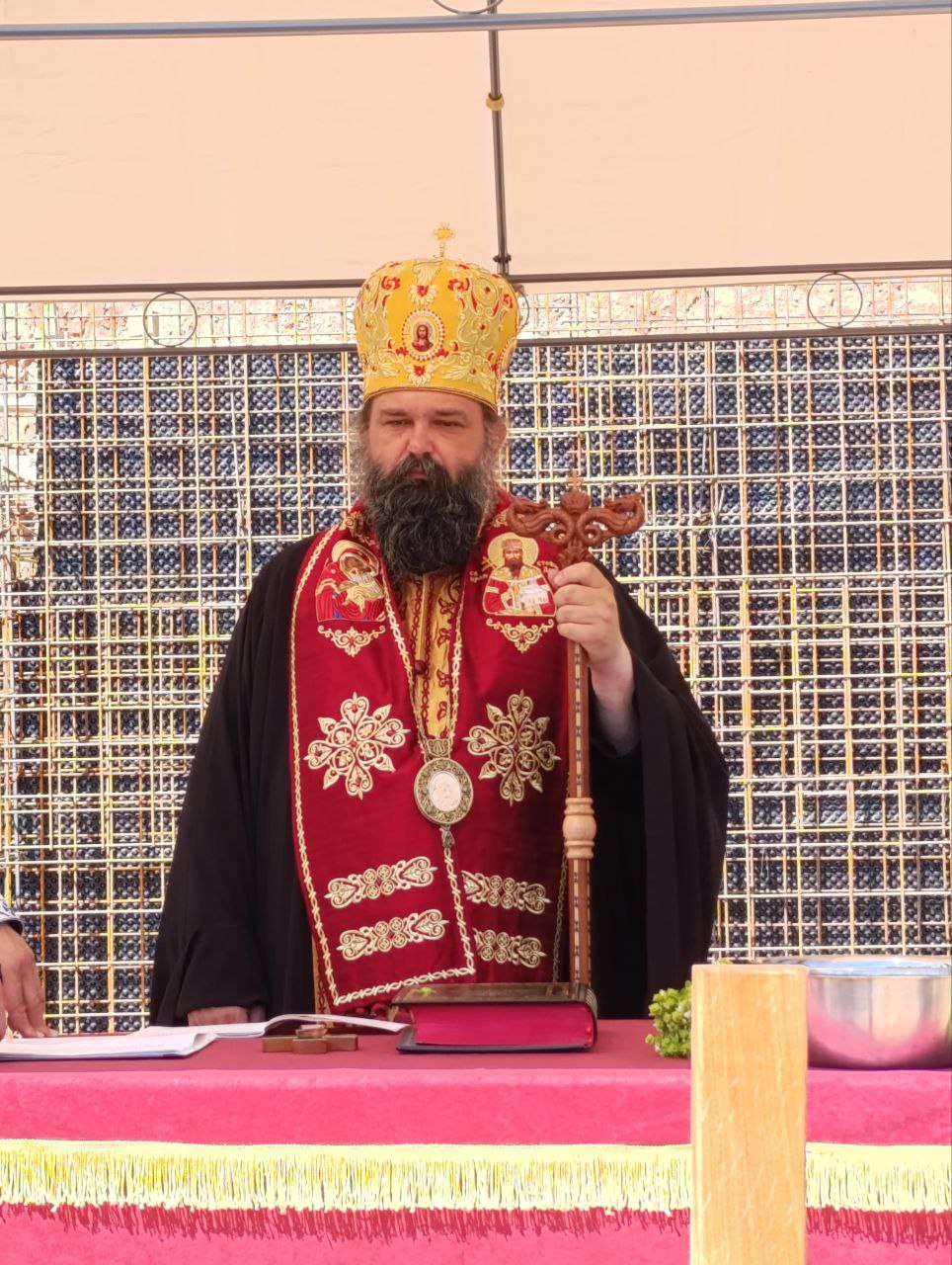 “Свакоме ће његова дјела да суде, она дјела када на страшном суду Господ нас запита јесмо ли га одјенули, јесмо ли га нахранили, јесмо ли га напојили, јесмо ли га посјетили у болницама и у тамницама и поврх свега јесмо ли исправно вјеровали у Њега. Са таквим мислима и таквим осјећањима и таквим молитвама и ми смо се дакле овдје сабрали Богу да заблагодаримо, Његову милост и помоћ да заискамо, Његове Пресвете Мајке и светога оца Никите Ремезијанског, анђела Божијих и свих светих Божијих, не уздајући се ни у какве своје снаге, слаби смо људи, и не учимо онако како, не дај Боже, учи папа Римски када каже да је Господ на Петру основао Цркву Своју па Петра за нешто сматрају, за камен темељац. И овај је камен који смо поставили, иако чврст, и овај камен и овај бетон може да се помјери и по својој сили не може да стоји до краја вијека и времена него само по сили Божијој, тако да и Господ, нити на Петру нити на папи, не дај Боже, нити на било коме од нас није основао Цркву Своју, него на Себи самом и на оној дивној вјери Петровој у Господа Христа, када је исповједио ону вјеру у Њега и рекао да је Он Христос, Син Бога живога. Тако и ми вјерујемо, тако и ми исповједамо, тако и ми призивамо у помоћ Светога оца Никиту Ремезијанског, чијим молитвама да се овај храм доврши. Будемо ли се у своје снаге уздали никада храм нећемо довршити, нити се икада један храм довршио, само молитвама светих Божијих угодника“, беседио је владика.