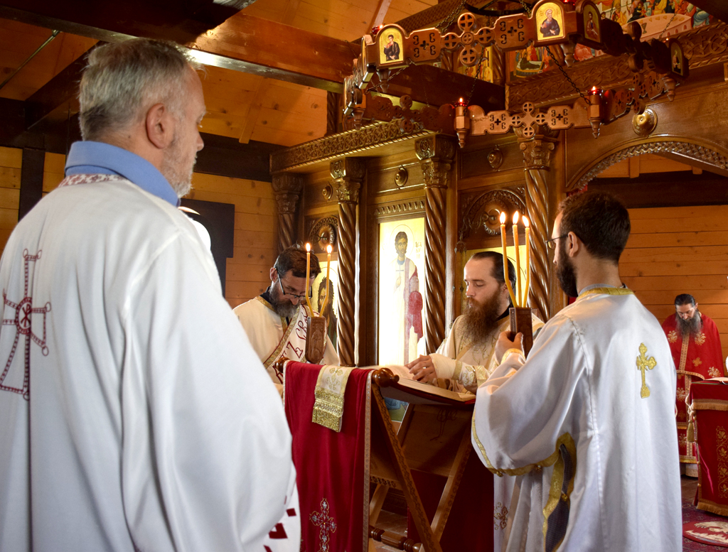У току Литургије Владика Артемије је у чин протосинђела рукопроизвео јеромонаха Софронија (Ердељана).