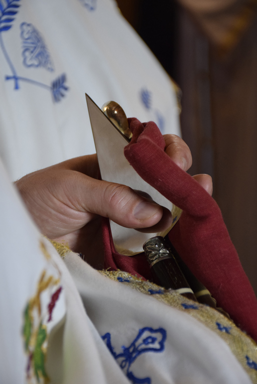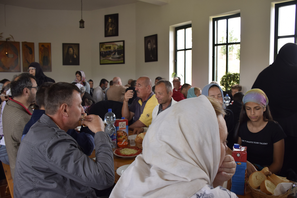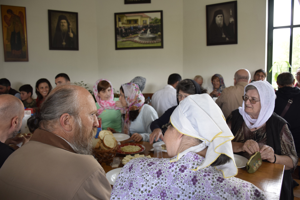 Након Свете Литургије, Његово Преосвештенство Епископ рашко-призренски у егзилу Г.Г. Артемијe, обавио је чин резања славског колача и благосиљања жита које је у част Преподобне матере наше Саре принела игуаманија Сара, која је тога дана славила свој имендан.