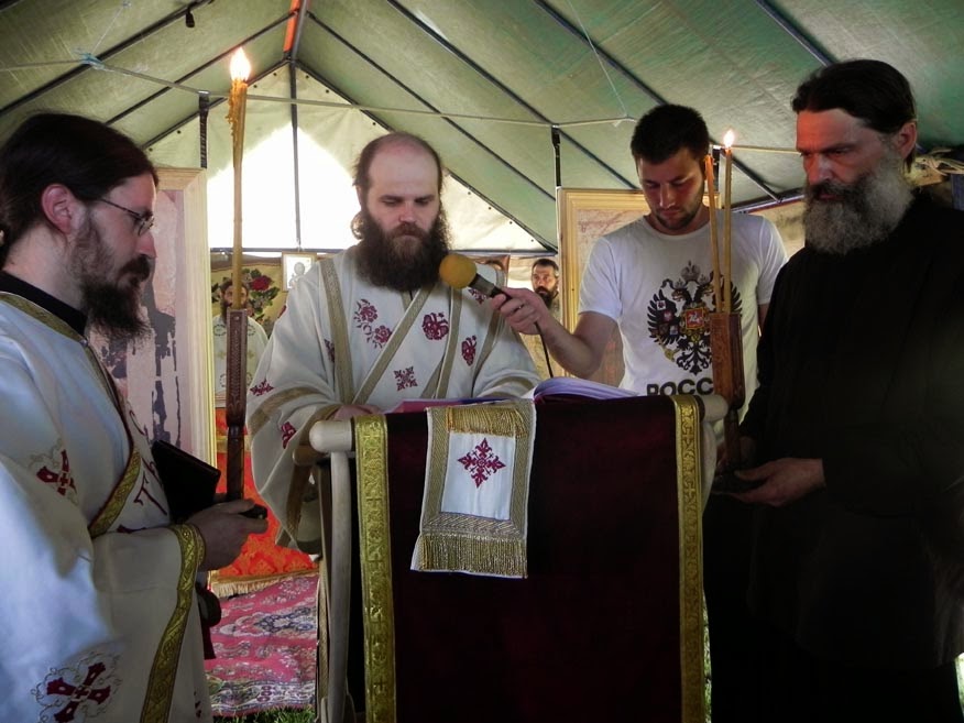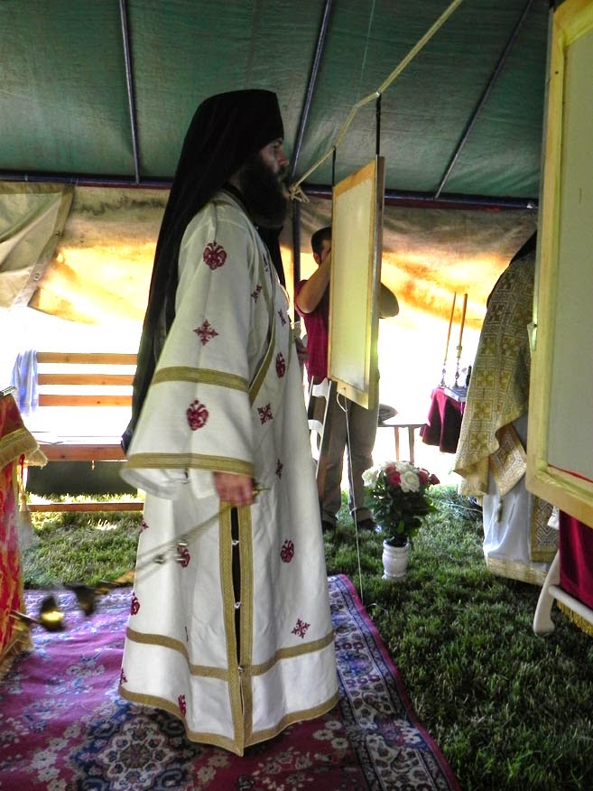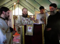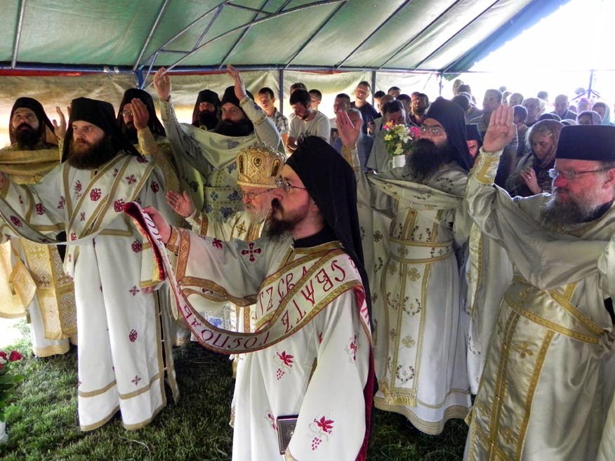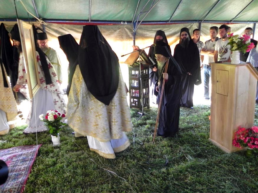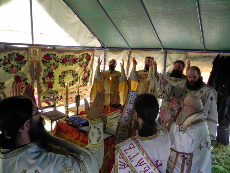 У својој празничној беседи Владика Артемије је рекао: „Али данас поред овог великога празника и славља ово је уједно и крсна слава ове наше богомоље, ове наше катакомбе овде под овим шатором у овој мало просторији овде где се сабирамо сваке недеље и празника да славимо Бога и да се учимо вери нашој православној не само шта да верујемо него и како ту веру нашу да чувамо. Исто онако као што су свети апостоли до силаска Светога Духа били неписмени, били неучени, обични рибари обичне занатлије и плашљиви људи јер су се рекосмо они разбежали приликом хватања њиховога учитеља а касније су од страха од Јудеја били закључани у неким просторијама у Јерусалиму“.