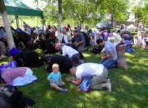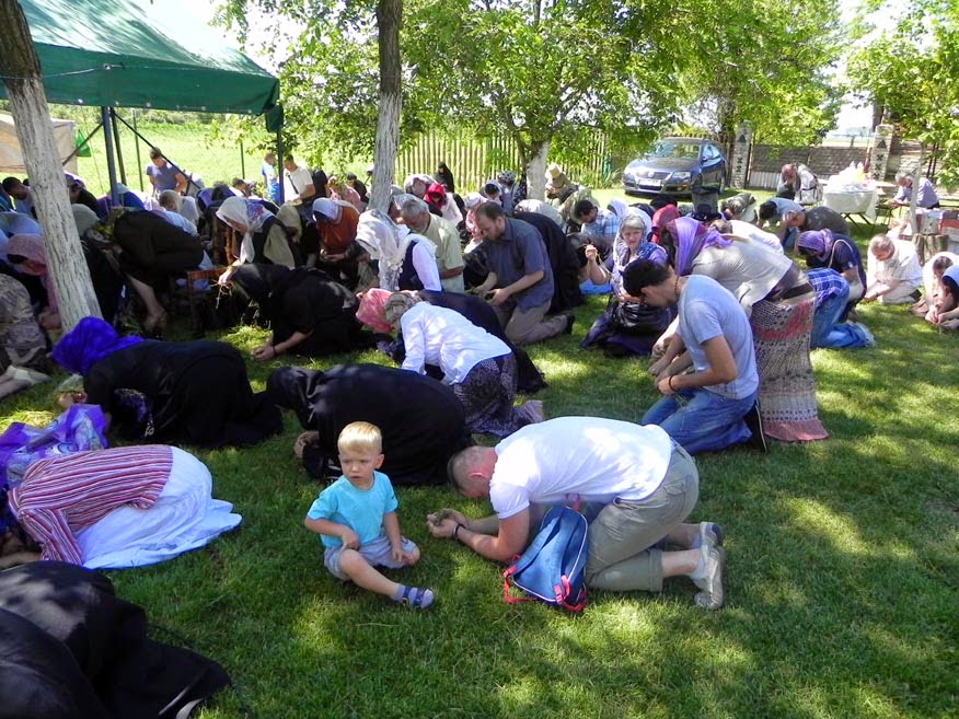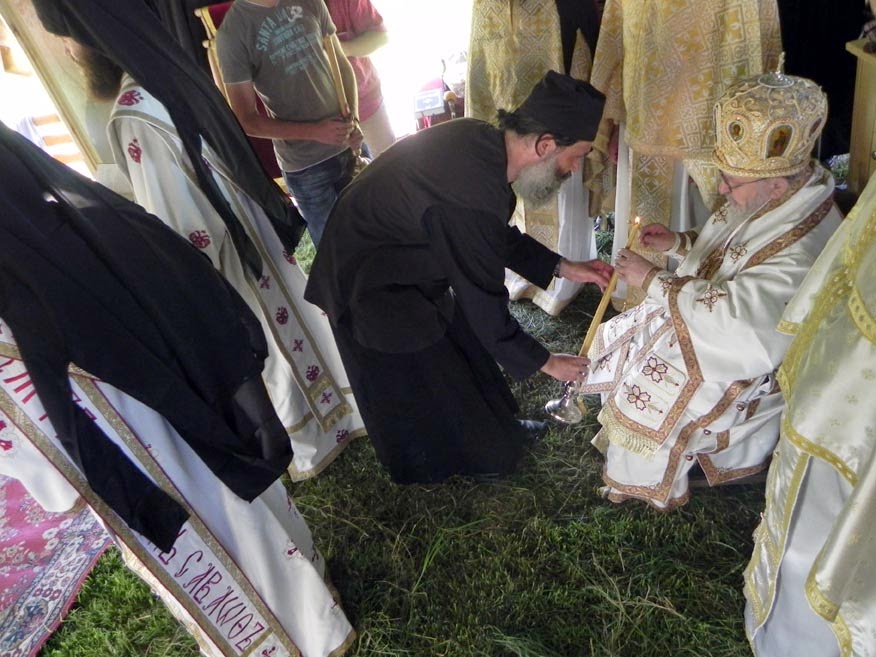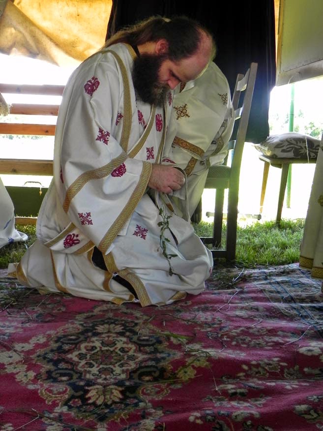 После Свете Архијерејске Литургије служено је вечерње на коме су верници клечали, и плели венчиће од траве.
