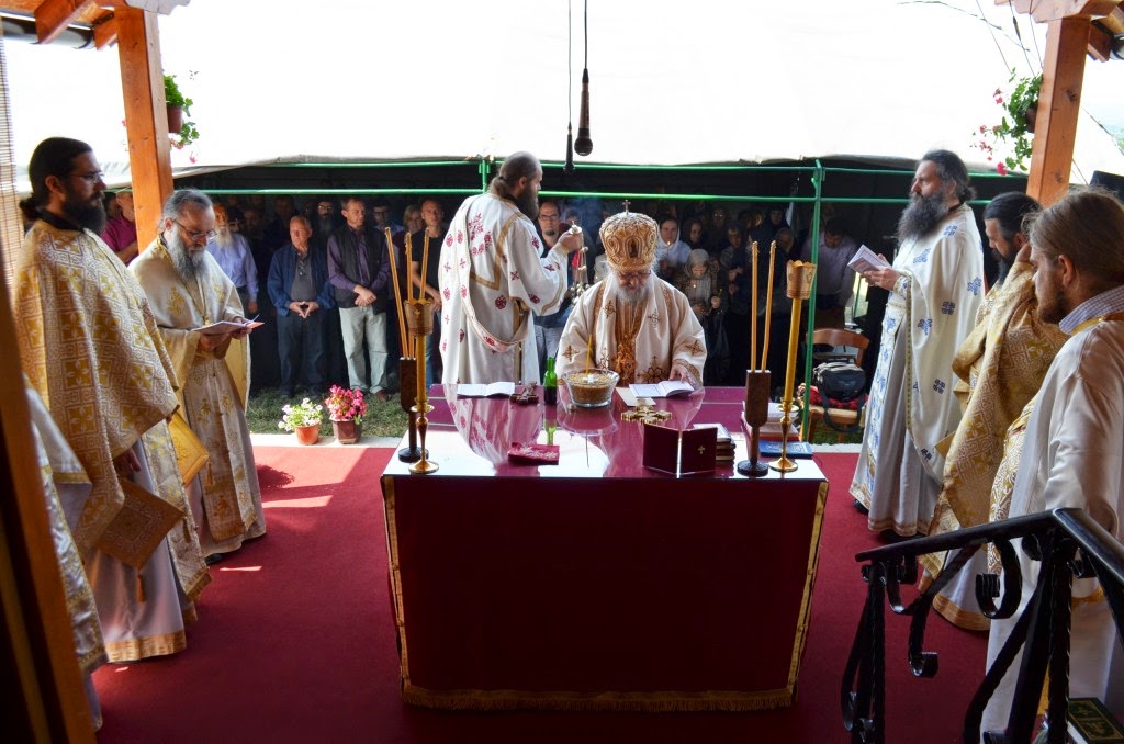 Свету Архијерејску Литургију служио је Његово Преосвештенство Епископ рашко-призренски у Егзилу Г.Г Артемије, уз саслуживање свештеномонаха и свештенођакона Епархије.