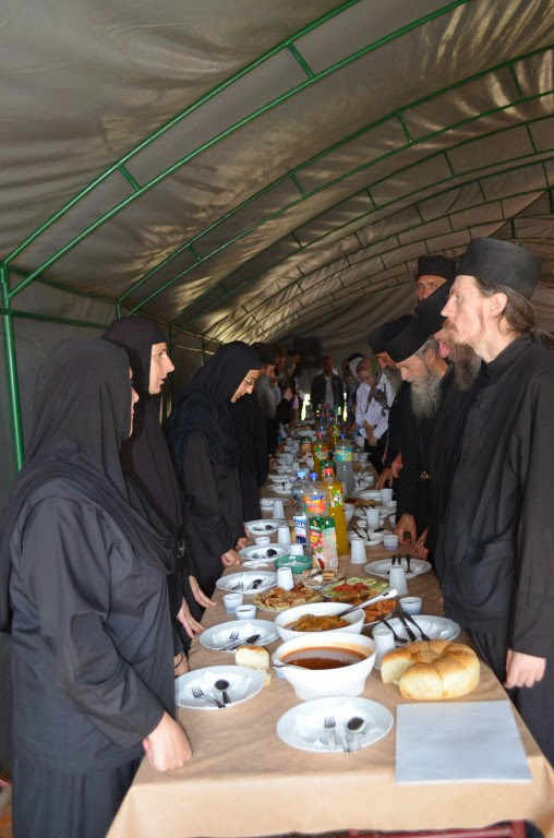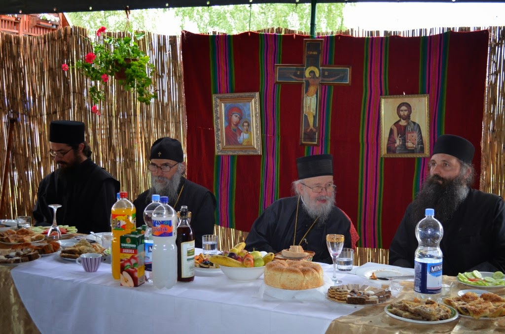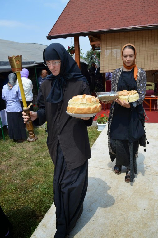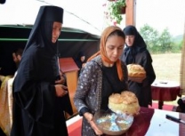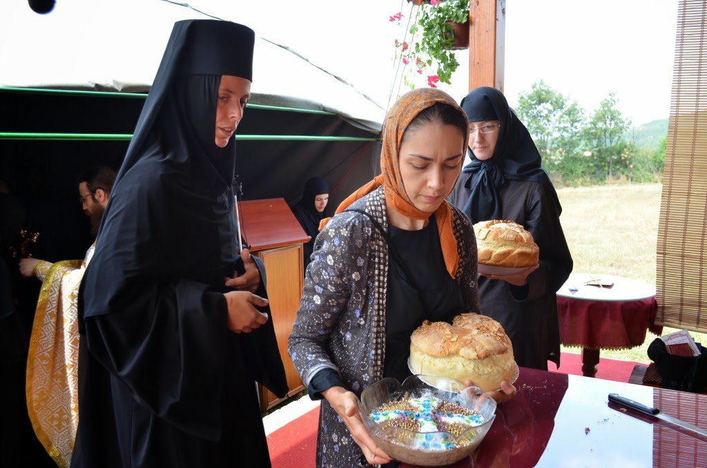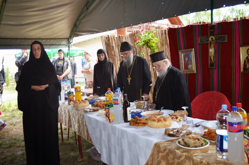 Владика је извршио чин сечења славског колача као и благосиљања жита, које је припремила настојатељица мати Варвара са својим сестрама.