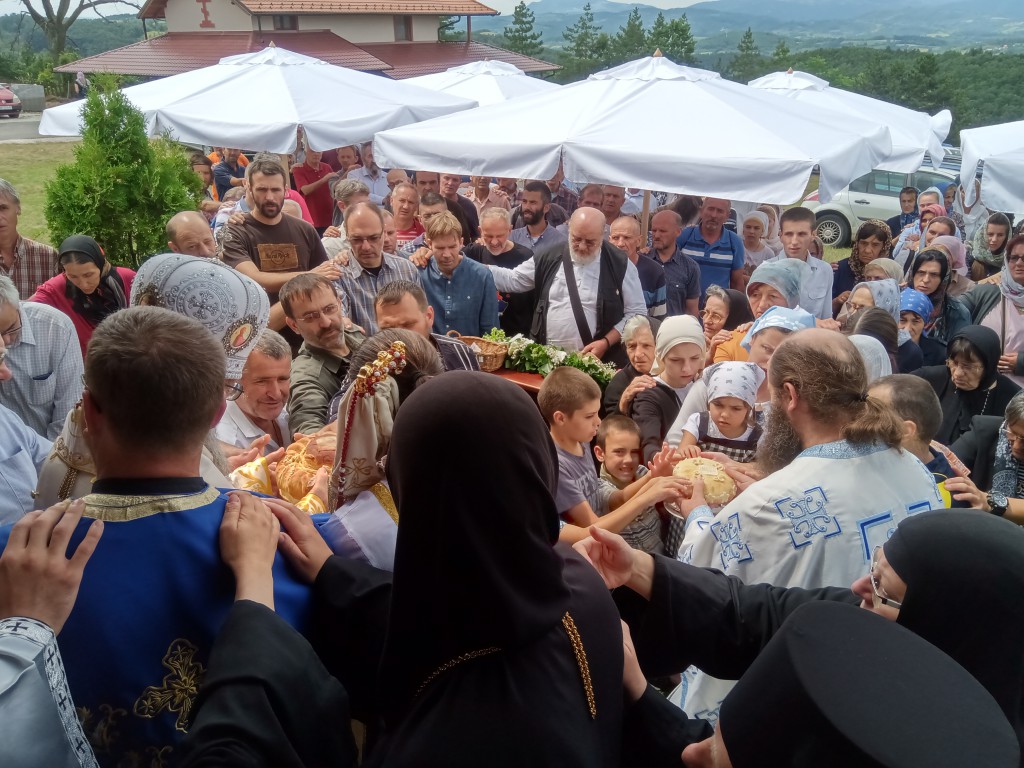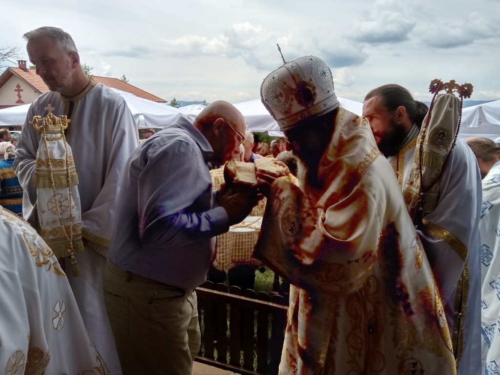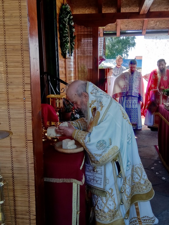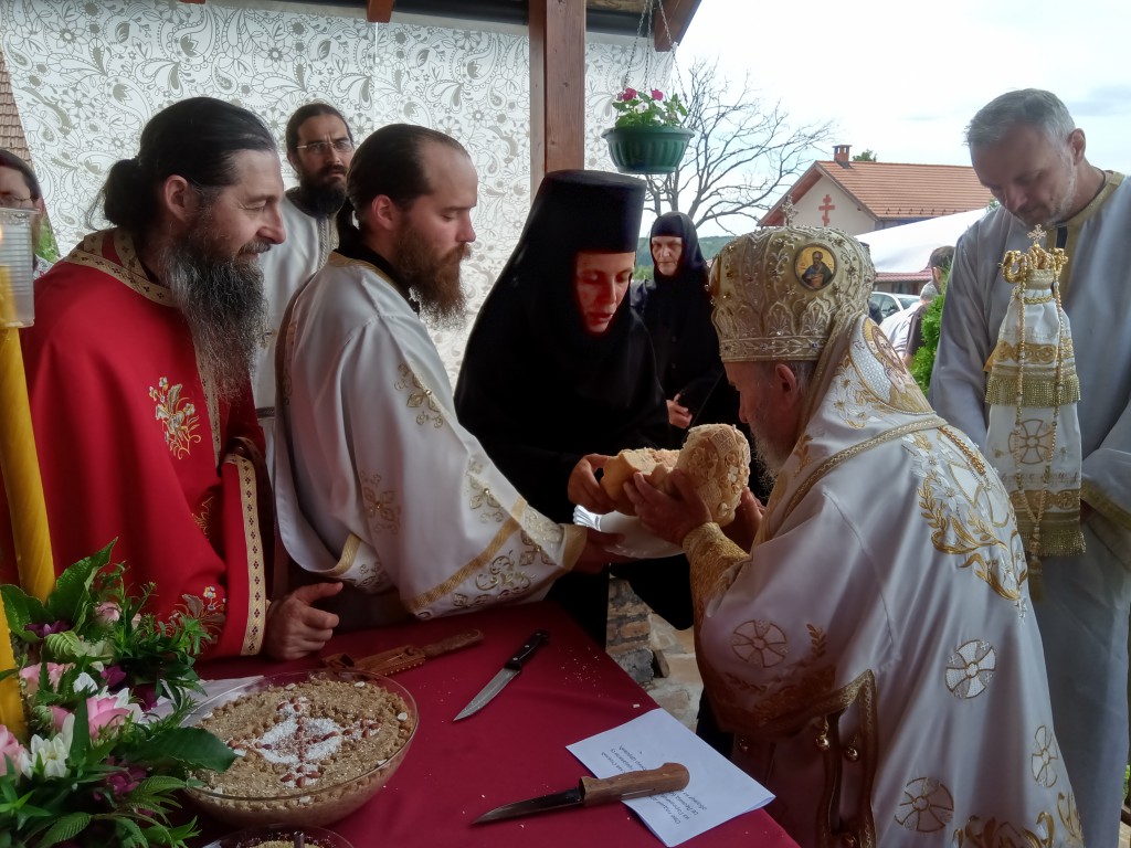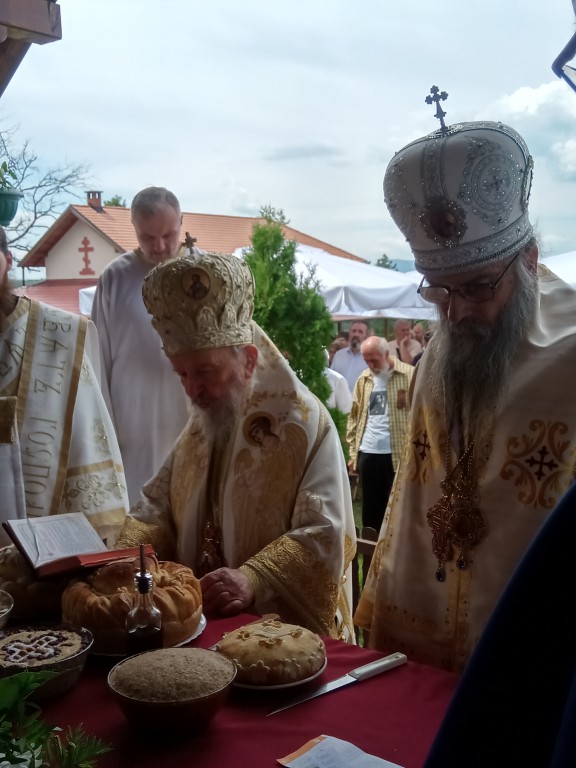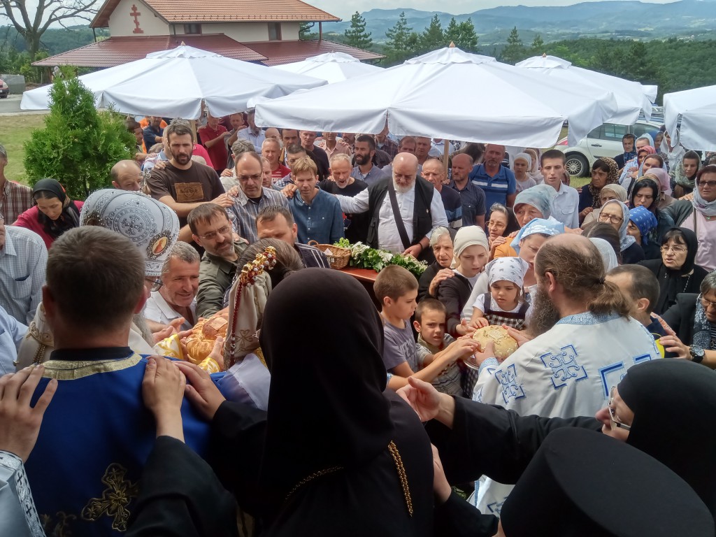 Након Свете Литургије одслужен је парастос српским домаћинима из Леушића и околине који су на Петровдан 1943. године убијени од немаца на Бањици. У народу су ови мученици, њих 27 на броју, познати као „Петровско робље“. Затим је Владика Артемије извршио чин резања славског колача и благосиљања жита које су у част светих апостола Петра и Павла принели овогодишњи домаћин славе: Томислав Стевлић из Горње Горевнице. За следећу годину пријавили су се: Леонид Богојевић и Тихомир Церовић из Београда.