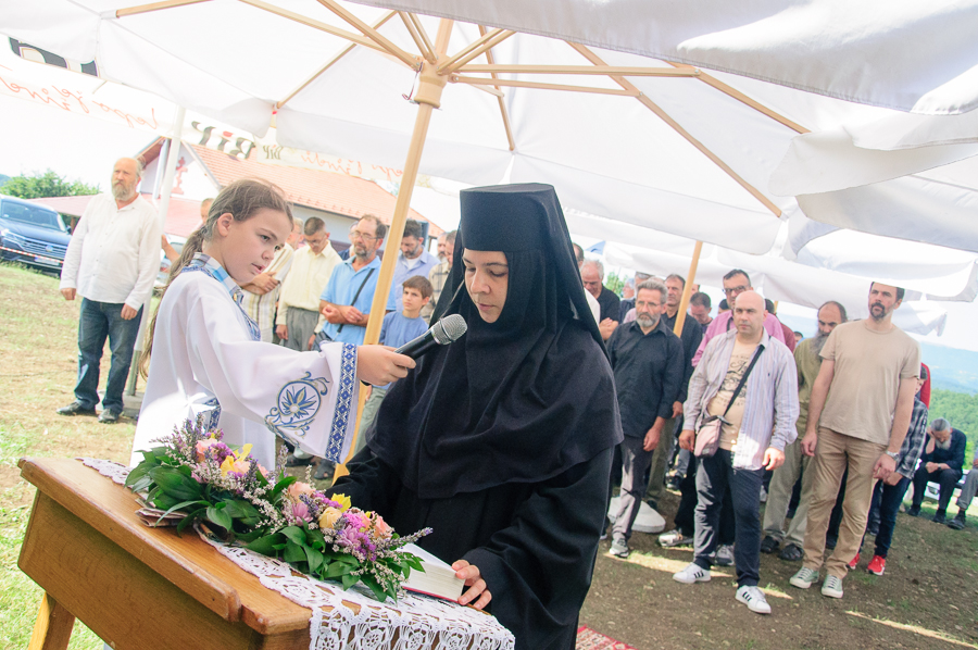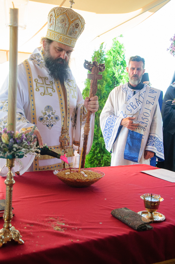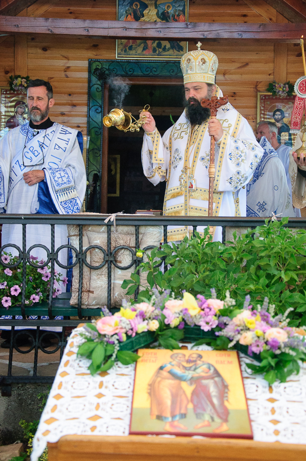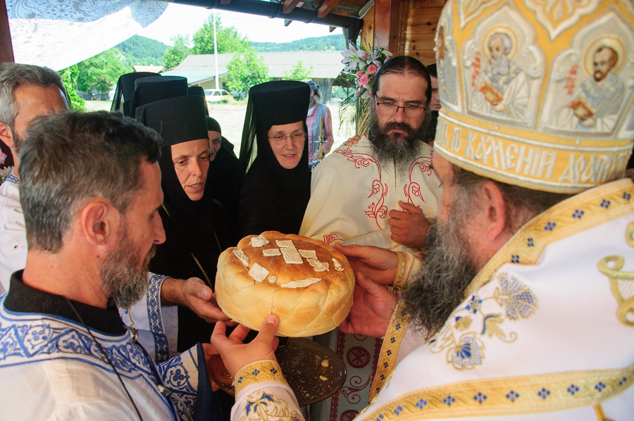 Након Свете Литургије одслужен је парастос српским домаћинима из Леушића и околине који су на Петровдан 1943. године убијени од немаца на Бањици. У народу су ови мученици, њих 27 на броју, познати као „Петровско робље“. Затим је Владика Ксенофонт извршио чин резања славског колача и благосиљања жита које су у част светих апостола Петра и Павла принели овогодишњи домаћин славе: Горан и Љупка Мијаиловић из Горњег Милановца и Бојана Марковић из Ариља. За следећу годину пријавио се Никола Цвијановић са породицом из Београда.