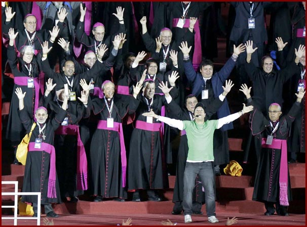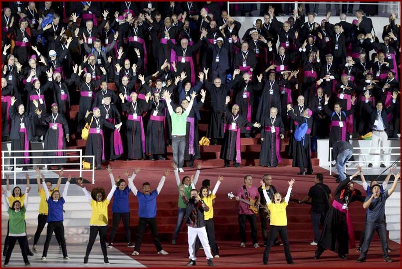 Приликом недавне посете Папе Бразилу, камера је забележила папистичке „епископе“ и кардинале како увежбавају плес којим ће поздравити свог Понтифекса.