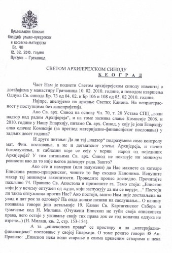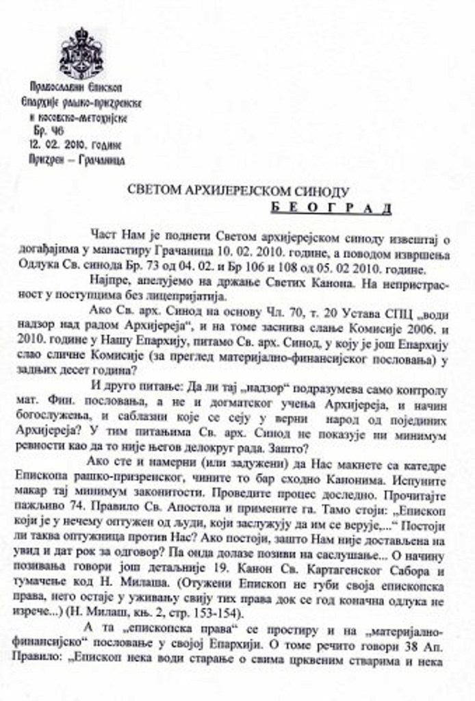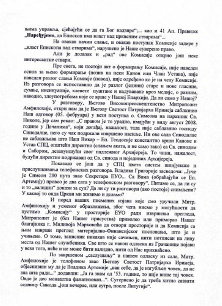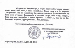 Смена Владике Артемија је од стране посрнулих епископа СПЦ стављена у категорију чисто унутарцрквених питања. Од смене је прошло пуних седам година. Државни суд још увек није доказао кривицу оптуженог владике али су крупни догађаји на црквеном и политичком плану у минулом периоду јасно доказали да је одлука СА Синода донета под притиском светских моћника. Архивски материјал који доносимо у наредном прилогу јасно о томе сведочи.