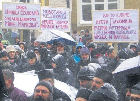 На данашњи дан (13. фебруара) 2010 године, испред зграде Патријаршије у Београду, одржан је мирни скуп подршке Његовом Преосвештенству Епископу рашко-призренском Г.Г. Артемију. Скупу је присуствовало бројно монаштво епархије рашко-призренске и неколико стотина светосаваца из редова свештенства, монаштва и мирјана, из разних свих крајева Србије. Истог дана је СА Синод обзнанио одлуку о привременом уклањању Епископа Артемија са управе над епархијом рашко-призренском због „финансијских малверзација“.