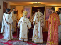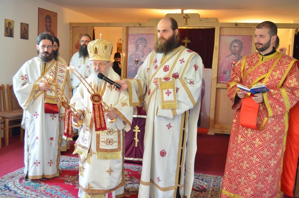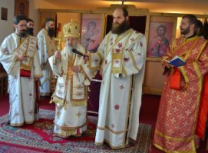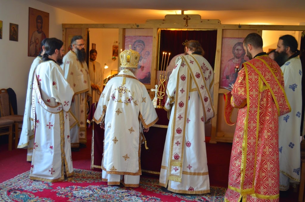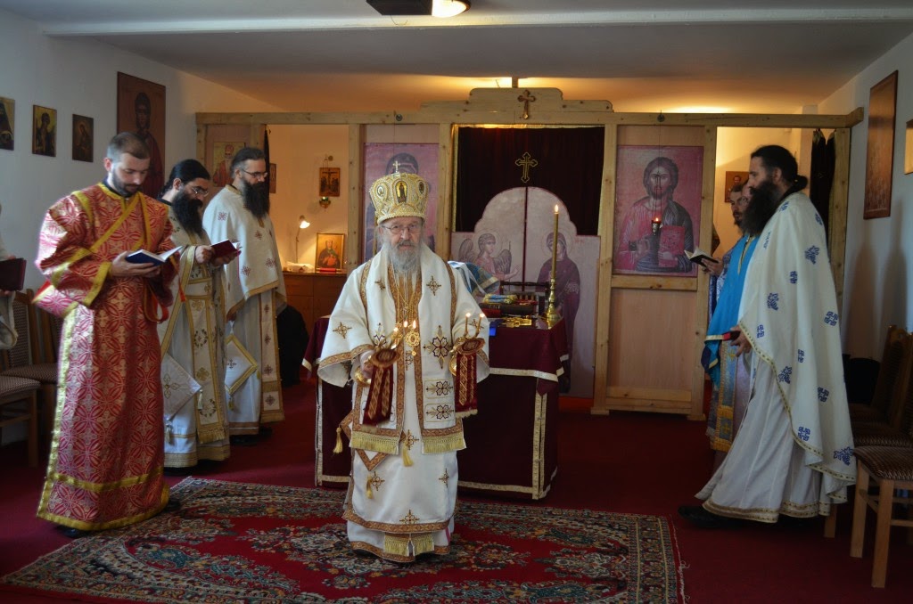 Његово Преосвештенство Епископ рашко-призренски у Егзилу Г.Г Артемије служио је Свету Архијерејску Литургију уз саслуживање протосинђела Варнаве, Наума, Максима, јеромонаха Јована, јерођакона Дамјана и Паладија, свештеника Жељка, и ђакона Жељка.