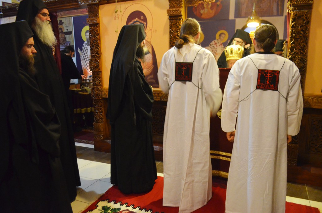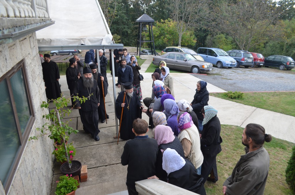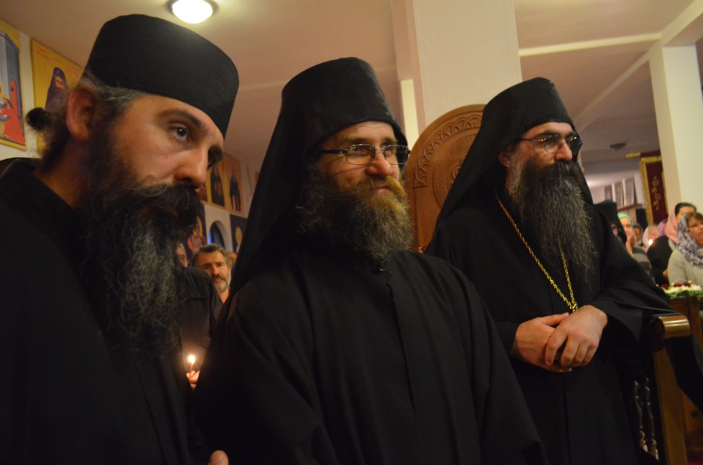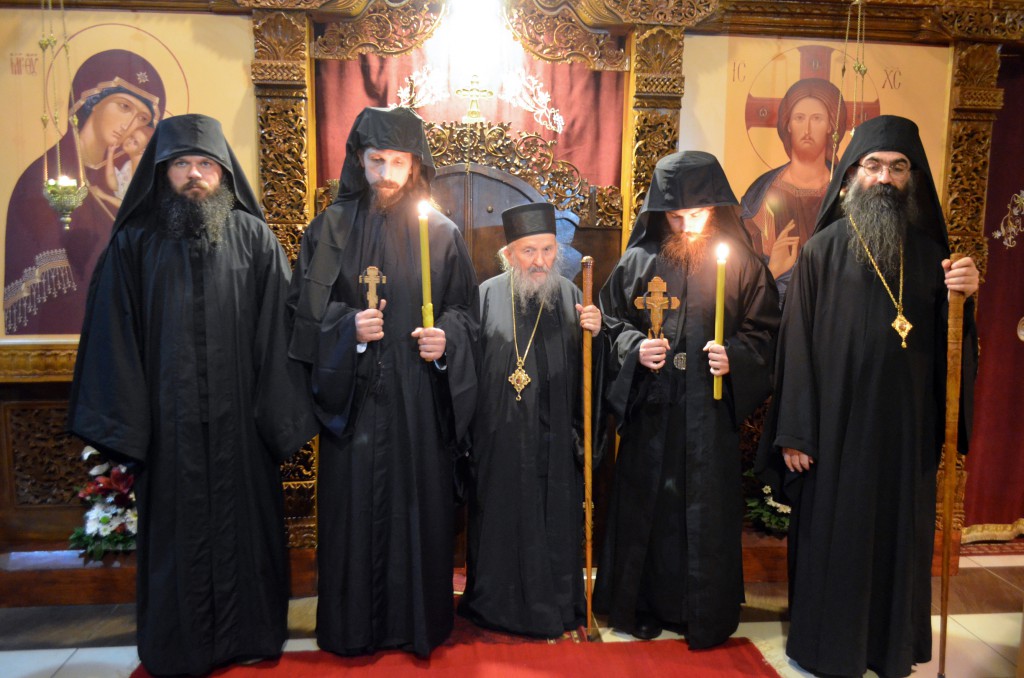 Ево браћо и сестре, данас се овде у овоме храму Божјем појавио Господ Христос, са Пресветом Мајком Својом, са свима анђелима и светитељима Својим. И они присуствују овоме свечаноме чину полагања завета монашких ова два млада човека. Откуда њима та снага? Они су чули речи Христове: “Ко хоће за мном да иде, да се одрекне себе и узме крст свој и за мном иде“. Те речи су дошле не само до њиховога уха, него до њиховога срца, као и код многих пре њих кроз две хиљаде година Цркве Христове у свету. И они су заиста послушали тај глас Господњи, оставили свет, оставили све у свету, и своје сроднике, и своје пријатеље, и своје факултете, и своје каријере, и све, и узели крст и кренули за Господом. Тај пут на који су кренули, браћо и сестре, није ни мало лак. То сте могли чути из завета које су они полагали, из питања која су они чули и на која су одговарали: “Да, с Божјом помоћи.“ Овакав одговор значи да су они свесни својих људских слабости, својих немоћи, да они као људи не би могли ништа сами учинити на извршењу заповести Божијих, али са надом на помоћ Божју они су смирено одговарали: “Да, с Божјом помоћи.“ Јер знају, како је Господ и рекао: “Без мене не можете чинити ништа.“ Не можете чинити ништа добро, ништа спасоносно, али авај, можете чинити оно што је зло, оно што је грешно, оно што удаљује од Бога. Те речи Христове важе не само за монахе, оне важе за свакога човека. Наравно, највише за оне који себе називају хришћанима и то православним хришћанима. Ми смо дужни, такође, да се увек сећамо тих речи Христових, да смиравамо себе, да се кајемо за своје грехе, и да се трудимо на спасењу душе своје. Црква Божија, Епархија рашко-призренска у егзилу, она и даље плодоноси и доноси плодове зреле и спремне за житницу небеску тамо где су многи пре њих отишли и који се спремају многи да тамо пођу.