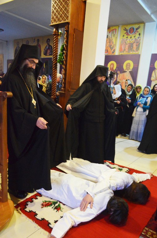 Данас смо добили два нова молитвеника пред лицем и пред престолом Божјим, који ће се молити не само за себе, за своју братију у манастиру у којем живе, него за све нас, за цео наш народ и за све православне хришћане, па и за све људе да их Бог приведе на пут спасења. Овај пут, рекох, није ни мало лак. Поред тога што ће се они молити за нас, и ми смо дужни молити се за њих, имати их у својим молитвама, ма колико скромни и сиромашни били, да их Бог ојача, да им дарује снаге духовне и телесне, да овај монашки пут прођу без бродолома, што каже црквена песма, и да дођу у тихо пристаниште Васркслога Господа. Да чују од Господа благе речи: “Слуго добри и верни, у маломе био си ми веран, уђи у радост Господа Твога.“