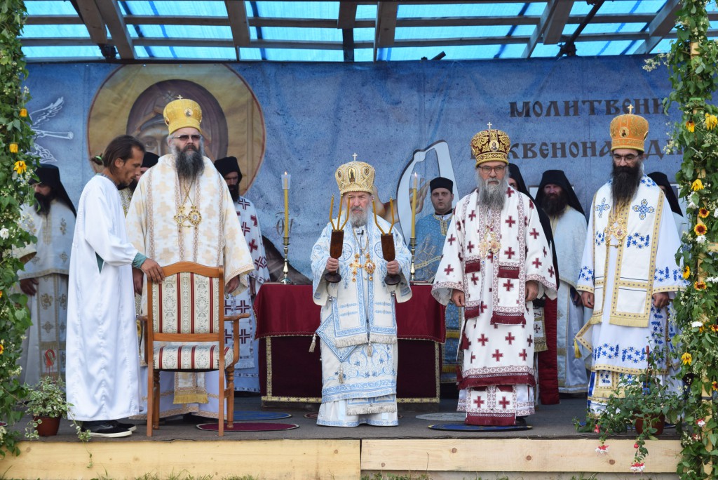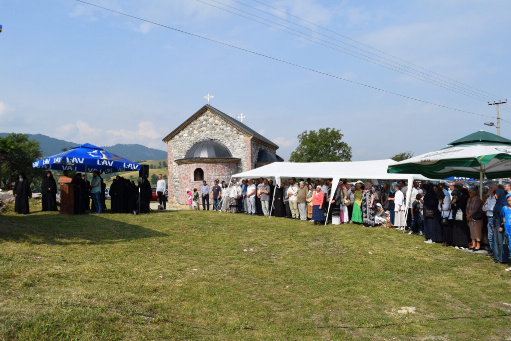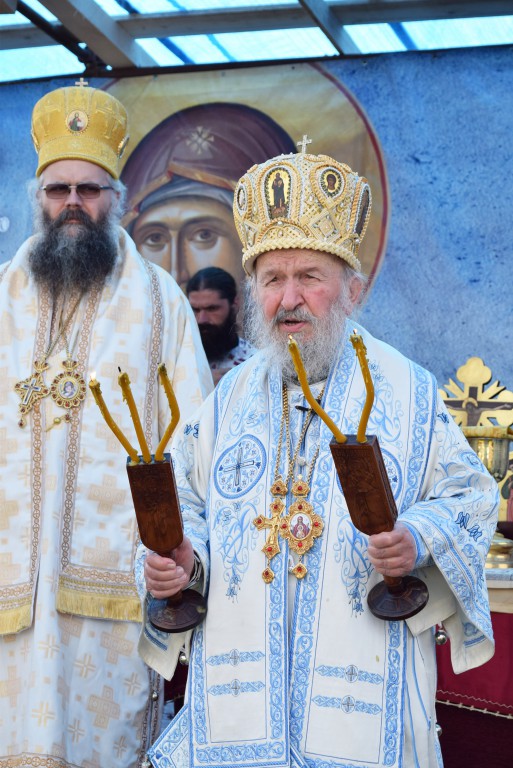 После сечења славског колача, надахнутом беседом се присутном народу обратио владика Наум. У својој архипастирској беседи владика Наум је најпре изнео повест о чудотворној икони Пресвете Богородице Тројеручице а затим је говорио о анђелски чистом животу Пресвете Богородице испуњеним непрестаном херувимски пламеном молитвом, читањем душекорисних књига и радом. На крају своје беседе владика је рекао: