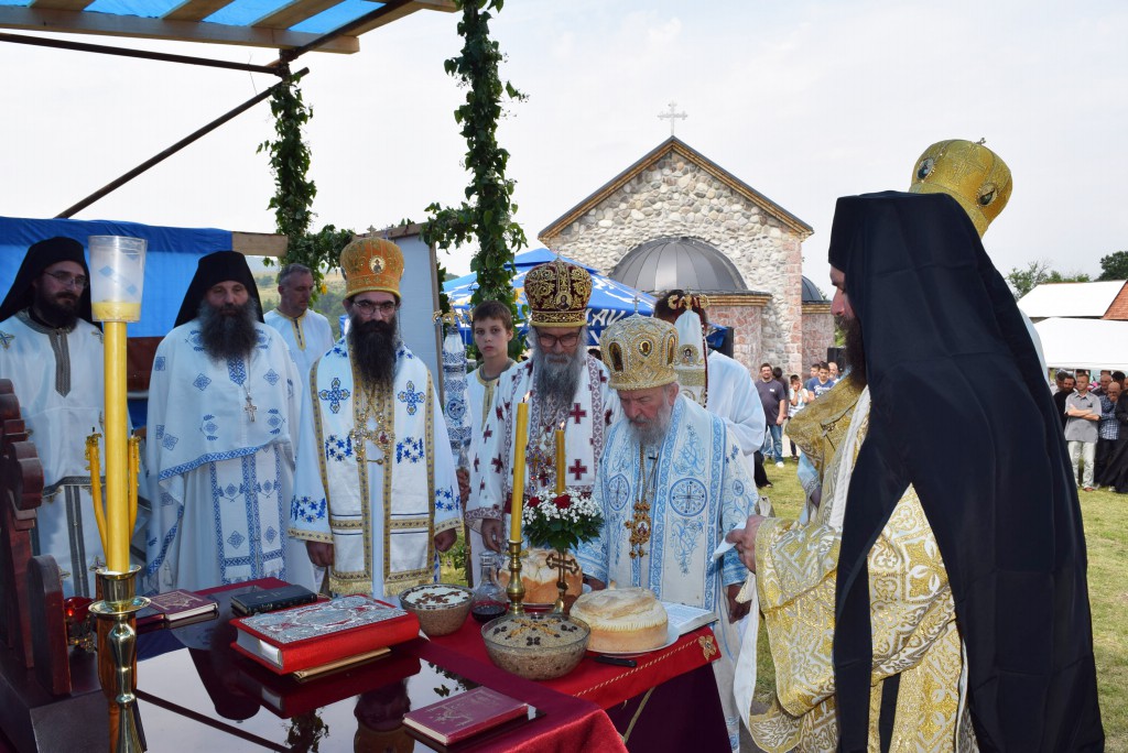 Након Свете Литургије Владика Артемије је обавио чин резања славског колача и благосиљања жита. Славски колач и жито су, поред манастирског братства, припремили овогодишњи домаћини славе – Стефан Станић из Ужица и Љиљана Стојковић из Голубца. За идућу годину пријавили су се Синиша Аћимовић из Ужица и Зорица Павловић из Чајетине.