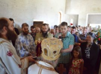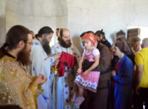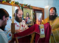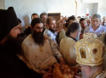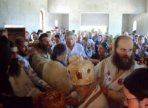 Након освећења храма Епископ Артемије служио је Свету Архијерејску Литургију, уз саслуживање свештеномонаха и свештенођакона Епархије.