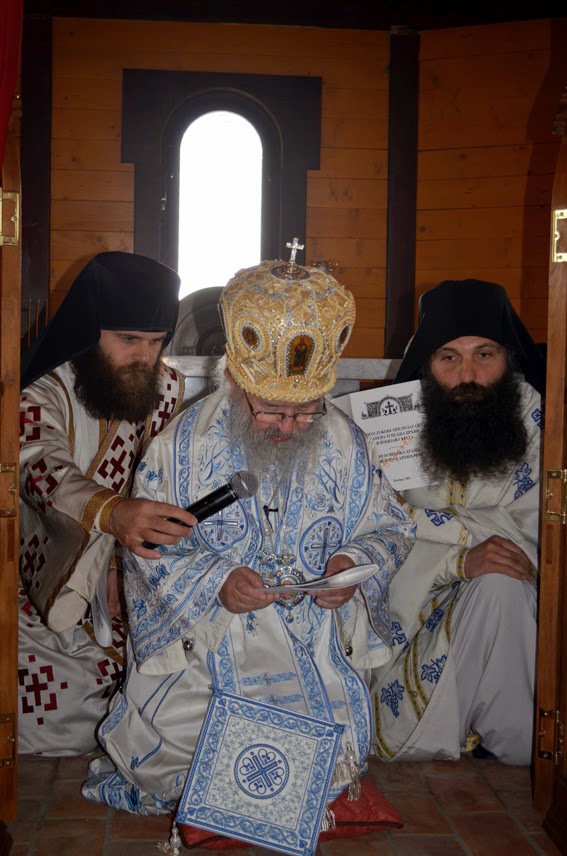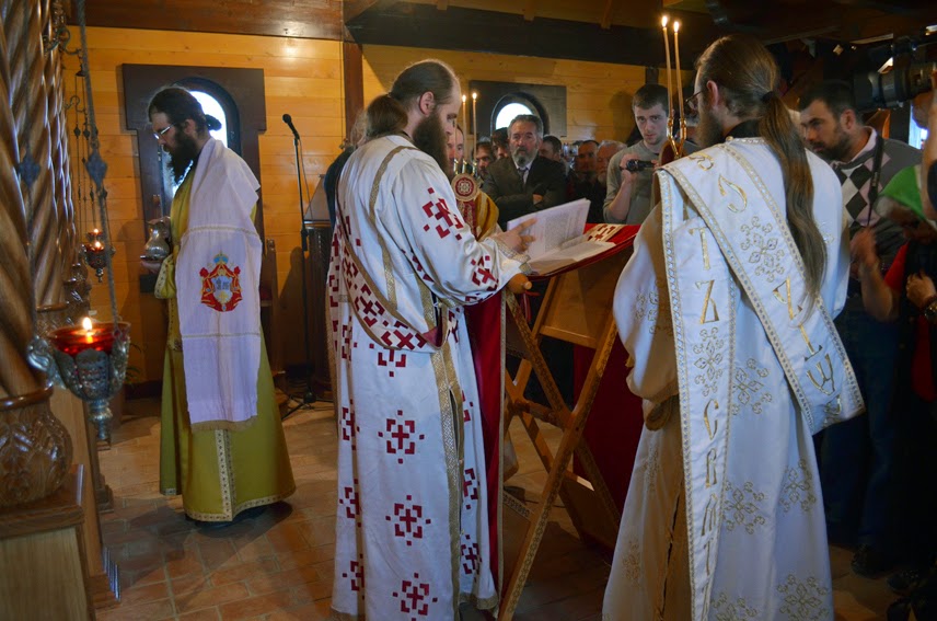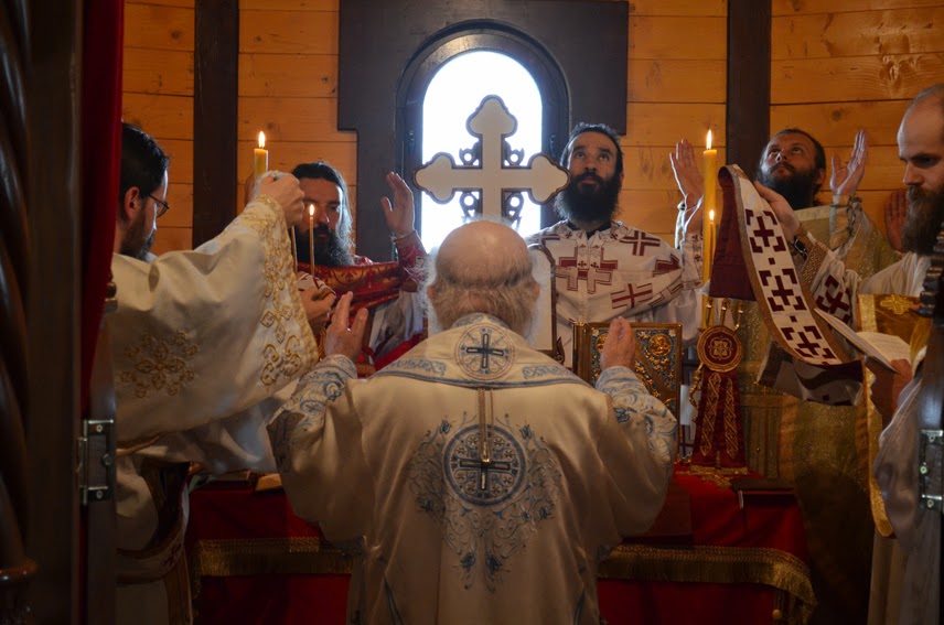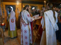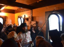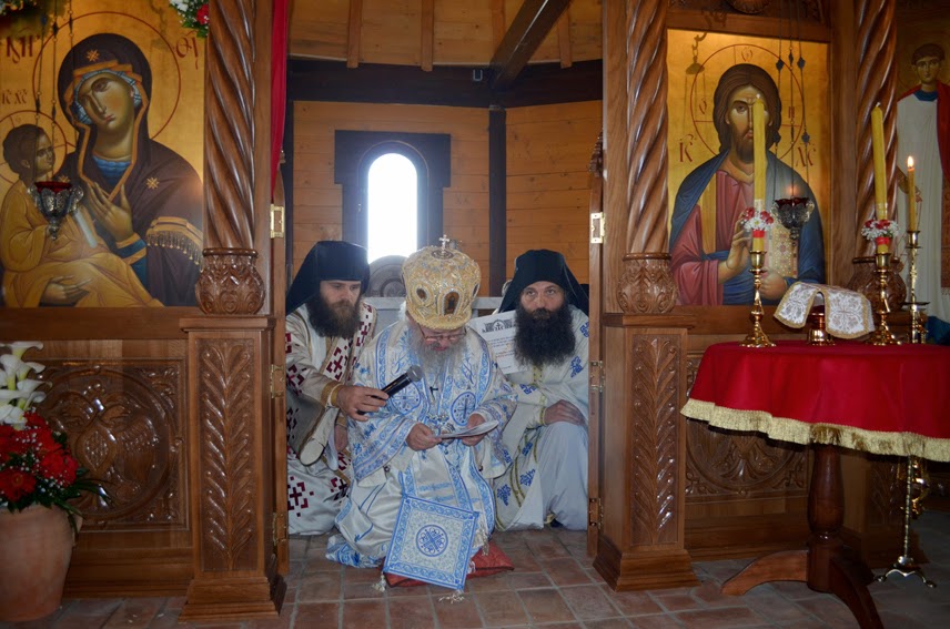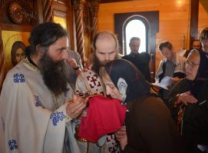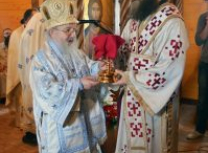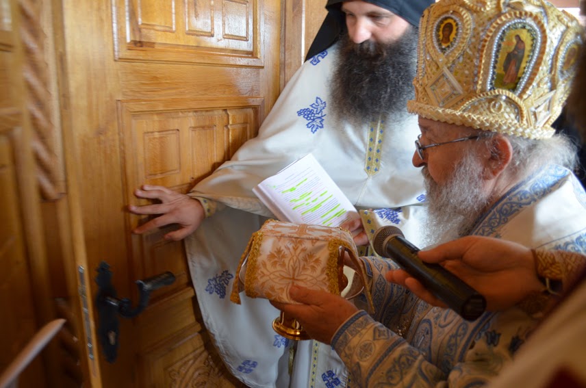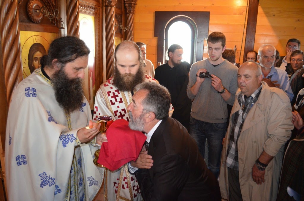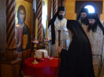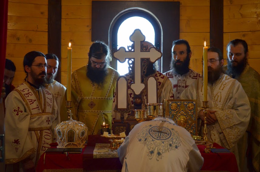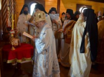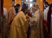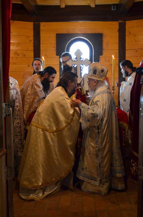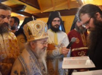 После освећења цркве, Светом Архијерејском Литургијом началствовао је Епископ Артемије, уз саслуживање свештеномонаха и свештенођакона из Епархије. Епископ је у чин јеромонаха произвео јерођакона Софронија, а у чин јерођакона монаха Јоасафа.