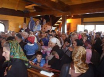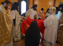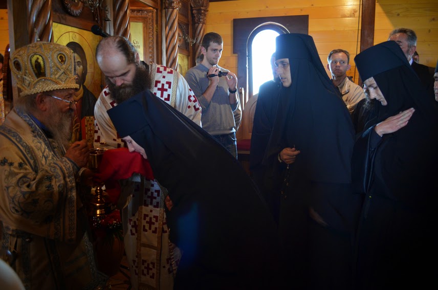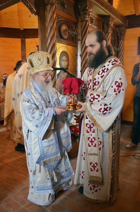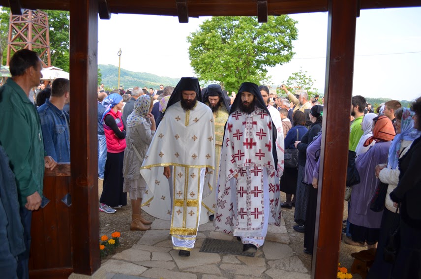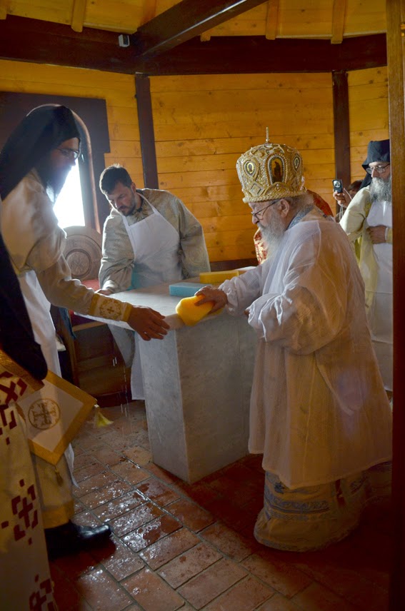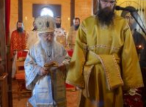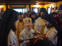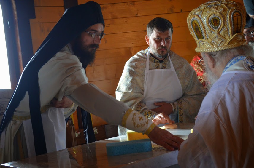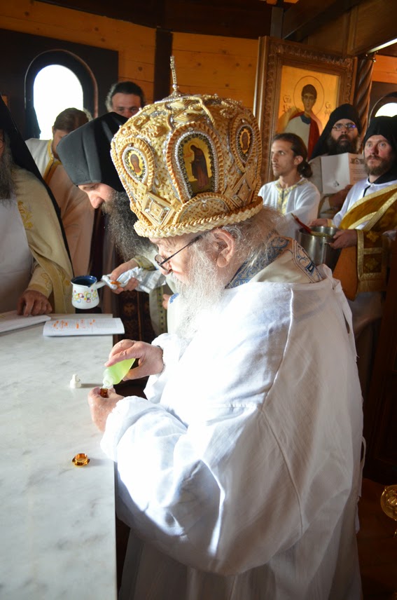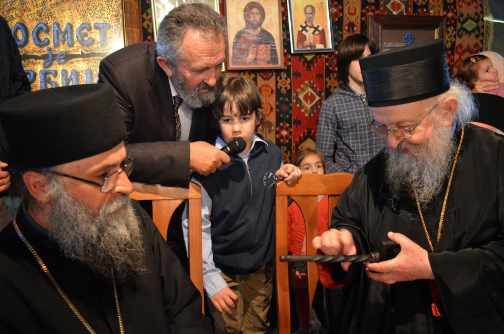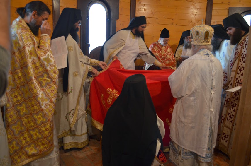 После освећења цркве, Светом Архијерејском Литургијом началствовао је Епископ Артемије, уз саслуживање свештеномонаха и свештенођакона из Епархије. Епископ је у чин јеромонаха произвео јерођакона Софронија, а у чин јерођакона монаха Јоасафа.