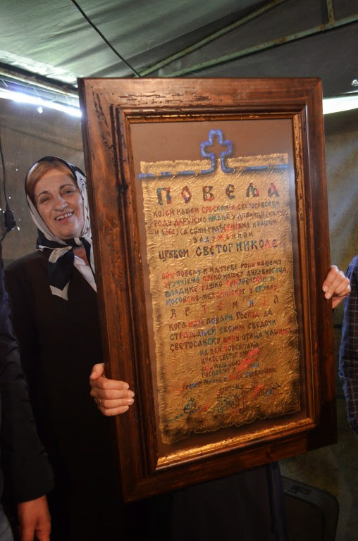 Око хиљаду људи је присуствовало овом молитвеном сабрању, а брат Милоје Стевановић је Владици Артемију уручио Повељу као и кључ од имања, које је поклонио „Србском и Светосавском роду преко духовног оца Владике Артемија“.