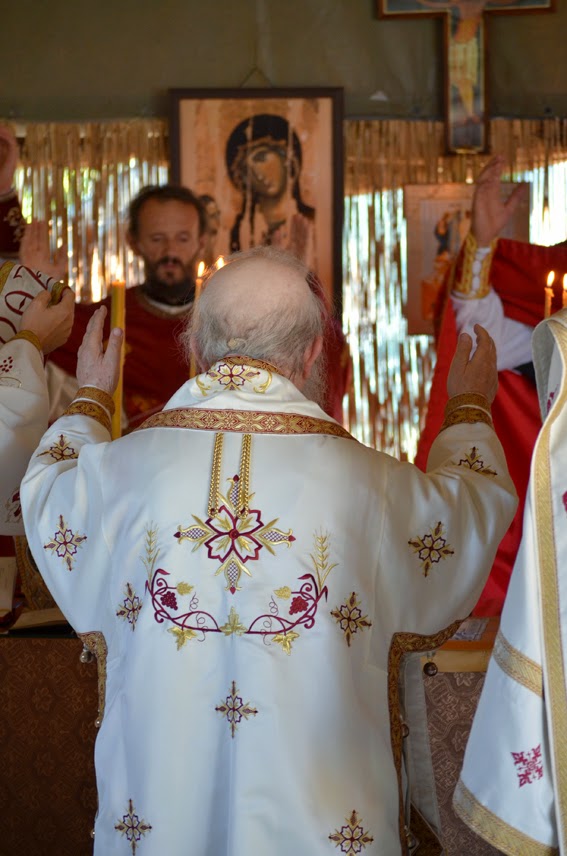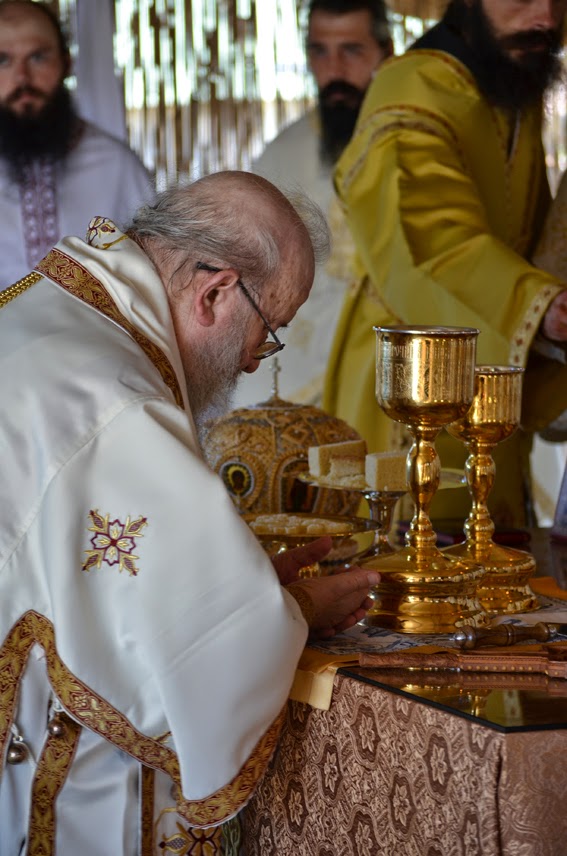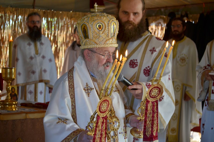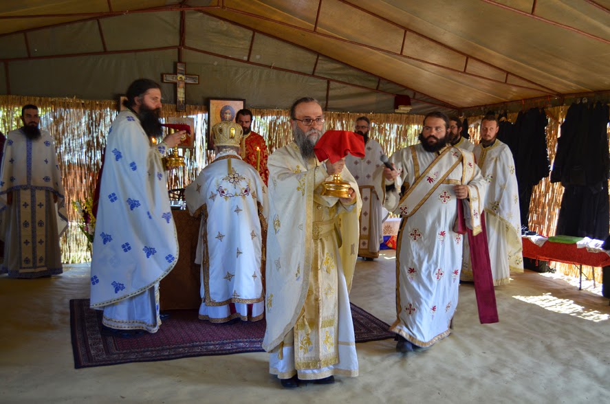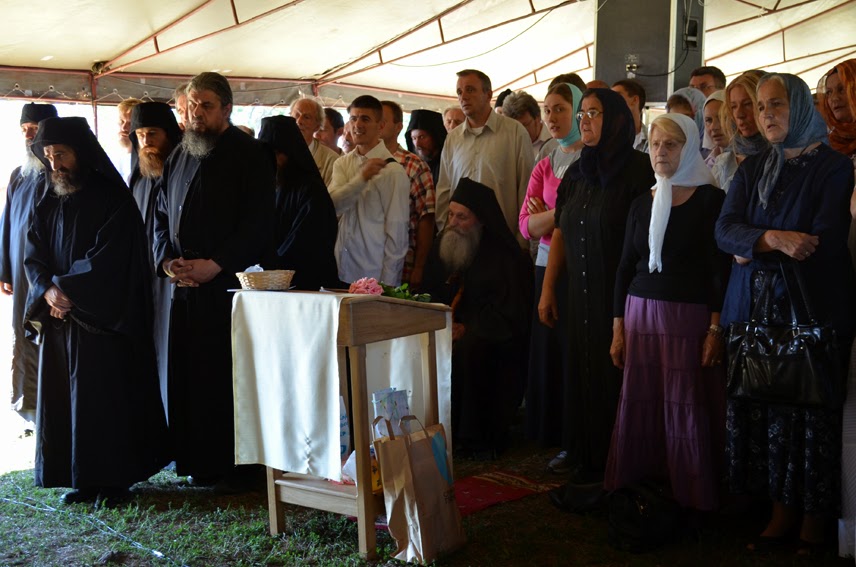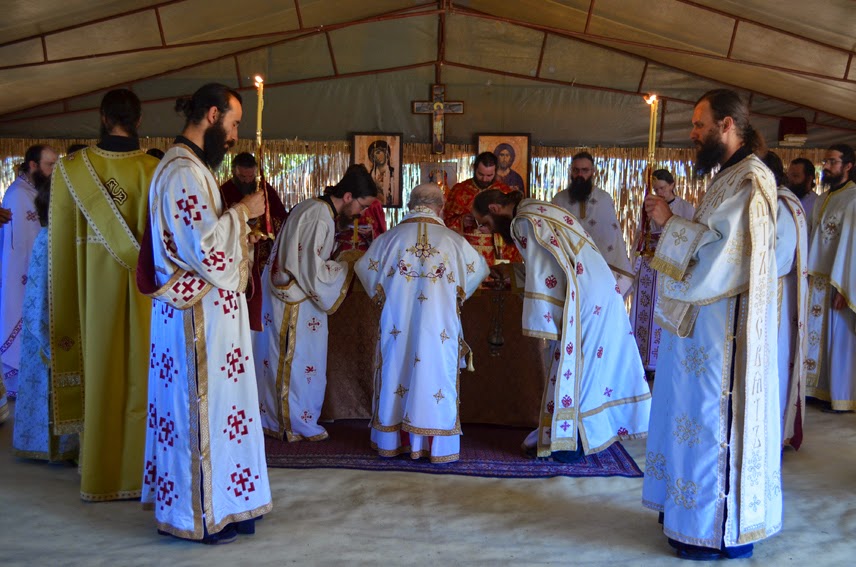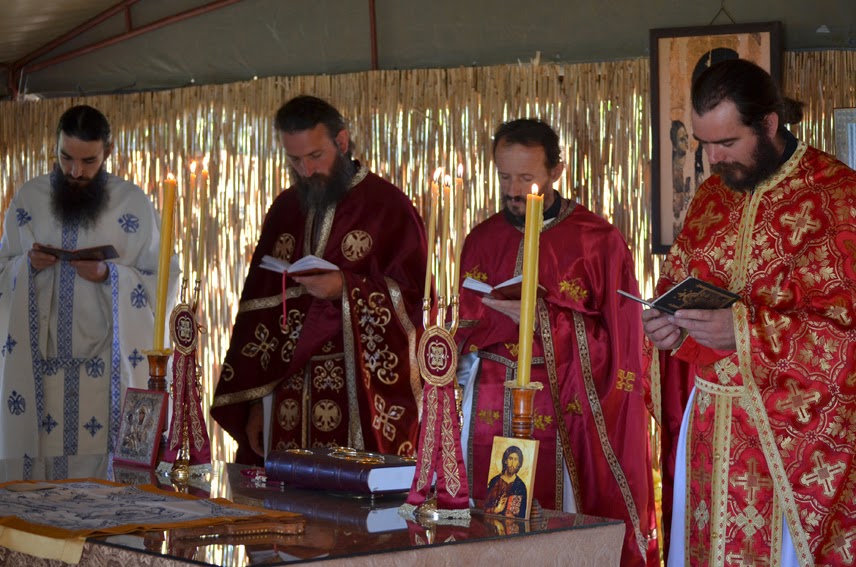С обзиром да је манастир у повоју, у недостатку адекватног храма света и божанствена архијерејска Литургија служена је под шатором. На светој Литургији чиноначалствовао је Његово Преосвештентво епископ рашко-призренски и косовско-метохијски у егзилу г.г. Артемије, уз саслуживање клира наше Епархије, међу којима више од двадесет свештенослужитеља, архимандрита, протосинђела, протојереја, јеромонаха и јерођакона. И поред велике удаљености, и поред чињенице да је овај велики дан у нашој атеизираној држави радни дан, овај празник је увеличао и велики број верника. Будући да је Госпојински пост у току, скоро сви присутни су се причестили.