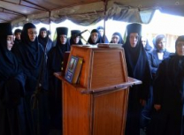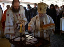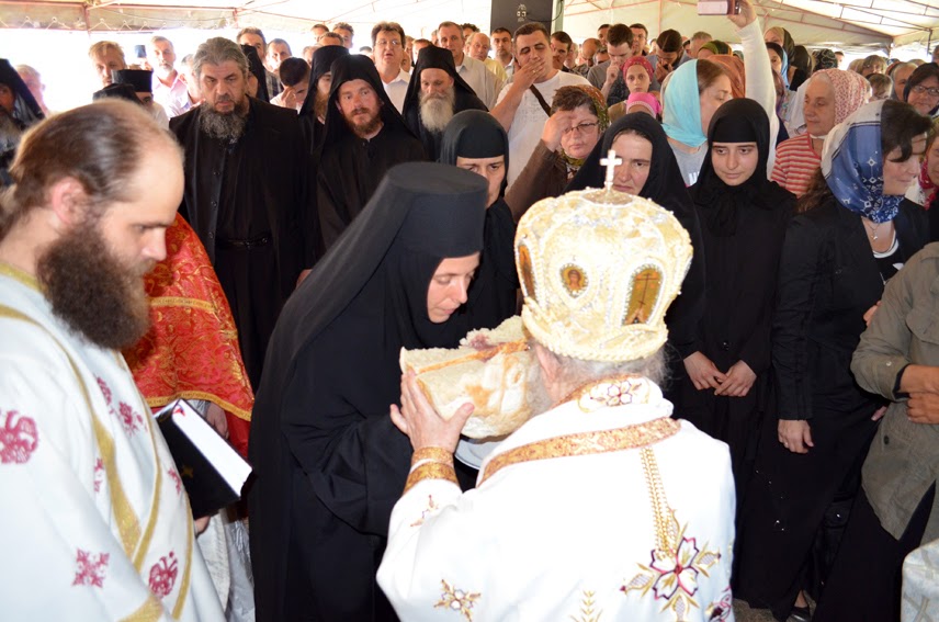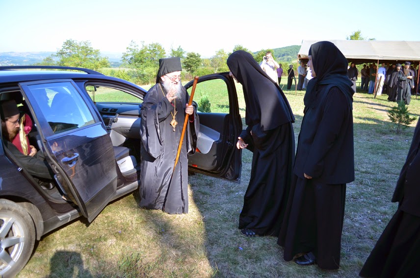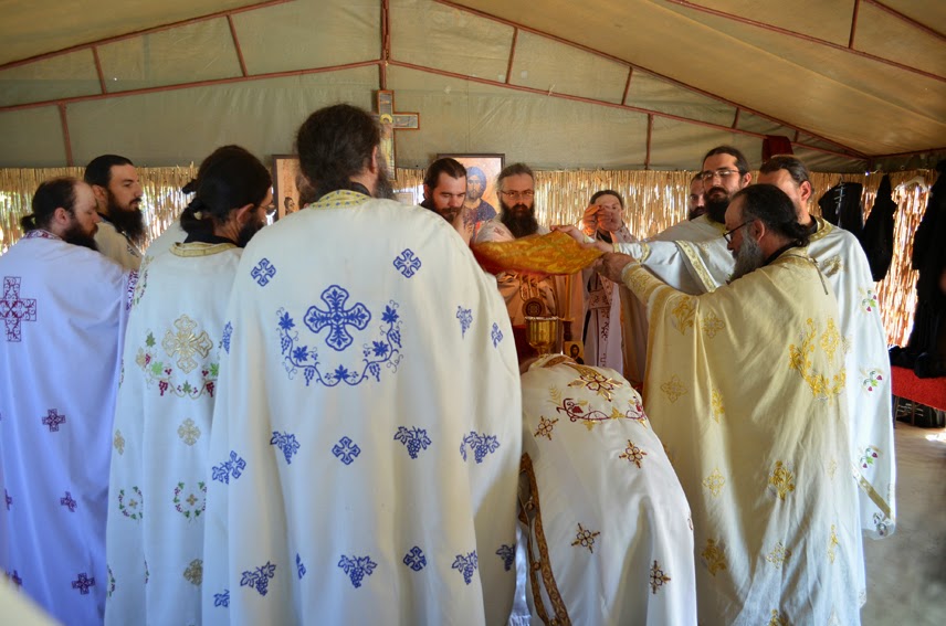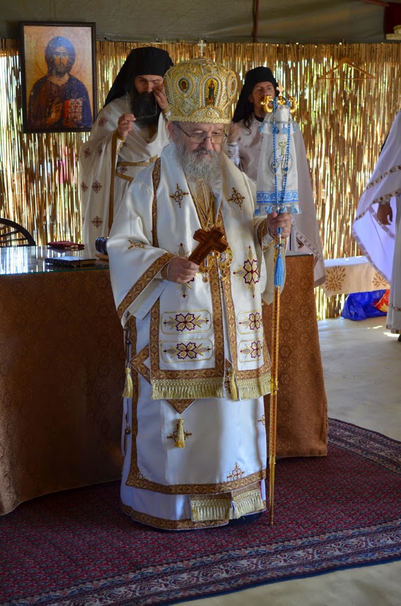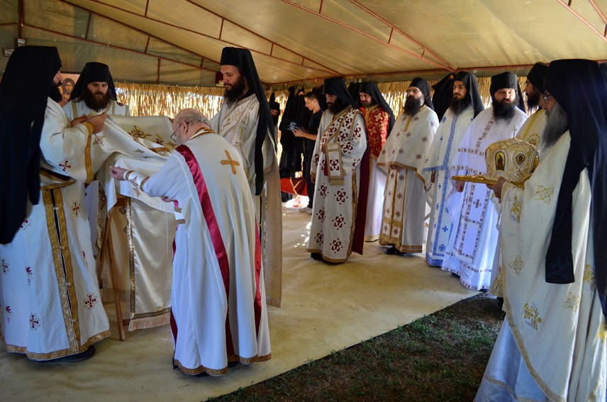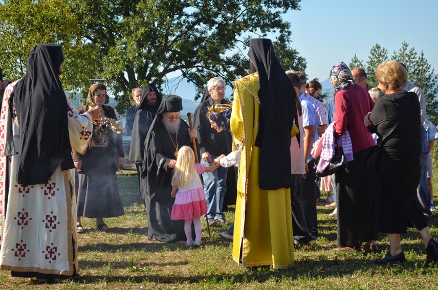 С обзиром да је манастир у повоју, у недостатку адекватног храма света и божанствена архијерејска Литургија служена је под шатором. На светој Литургији чиноначалствовао је Његово Преосвештентво епископ рашко-призренски и косовско-метохијски у егзилу г.г. Артемије, уз саслуживање клира наше Епархије, међу којима више од двадесет свештенослужитеља, архимандрита, протосинђела, протојереја, јеромонаха и јерођакона. И поред велике удаљености, и поред чињенице да је овај велики дан у нашој атеизираној држави радни дан, овај празник је увеличао и велики број верника. Будући да је Госпојински пост у току, скоро сви присутни су се причестили.