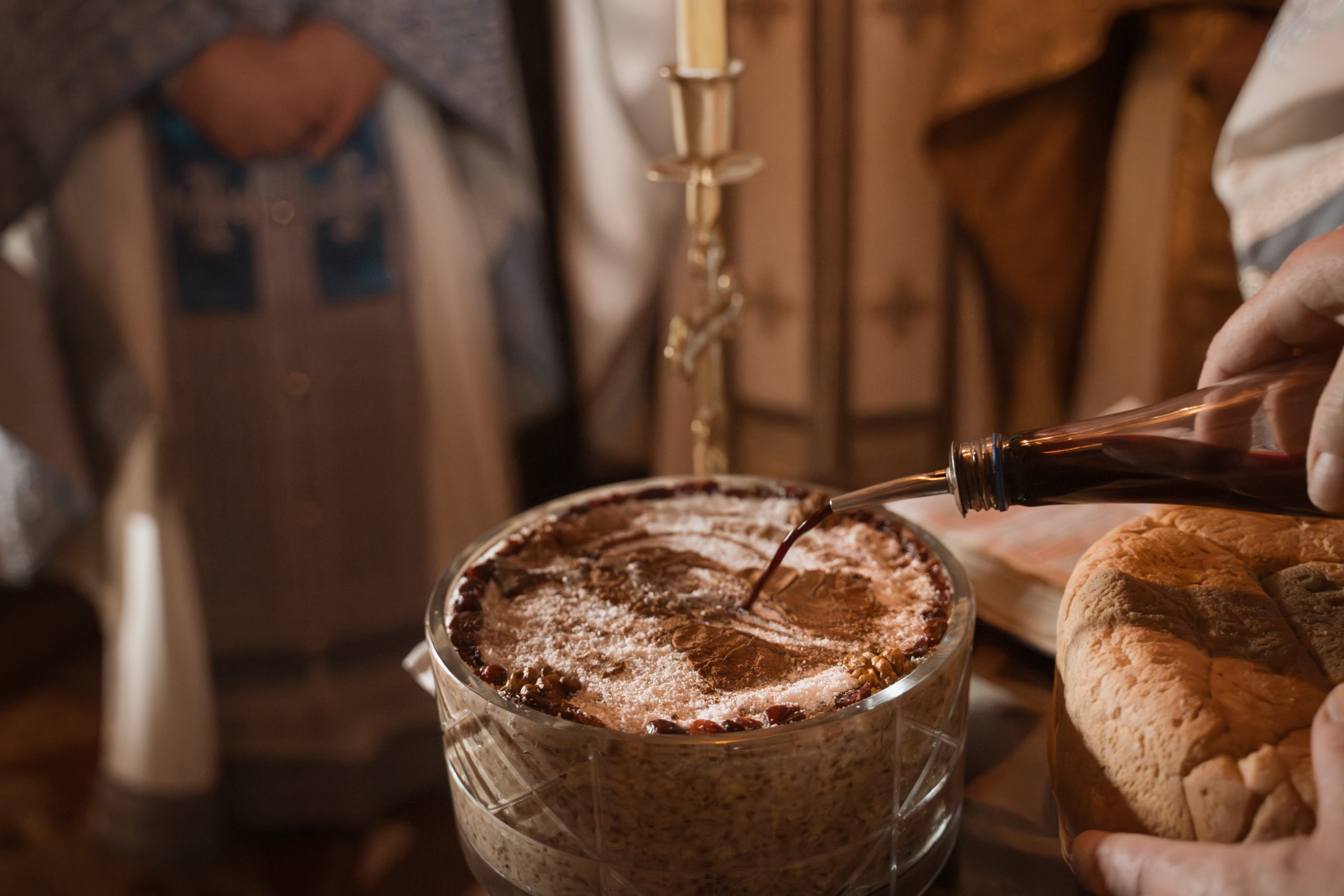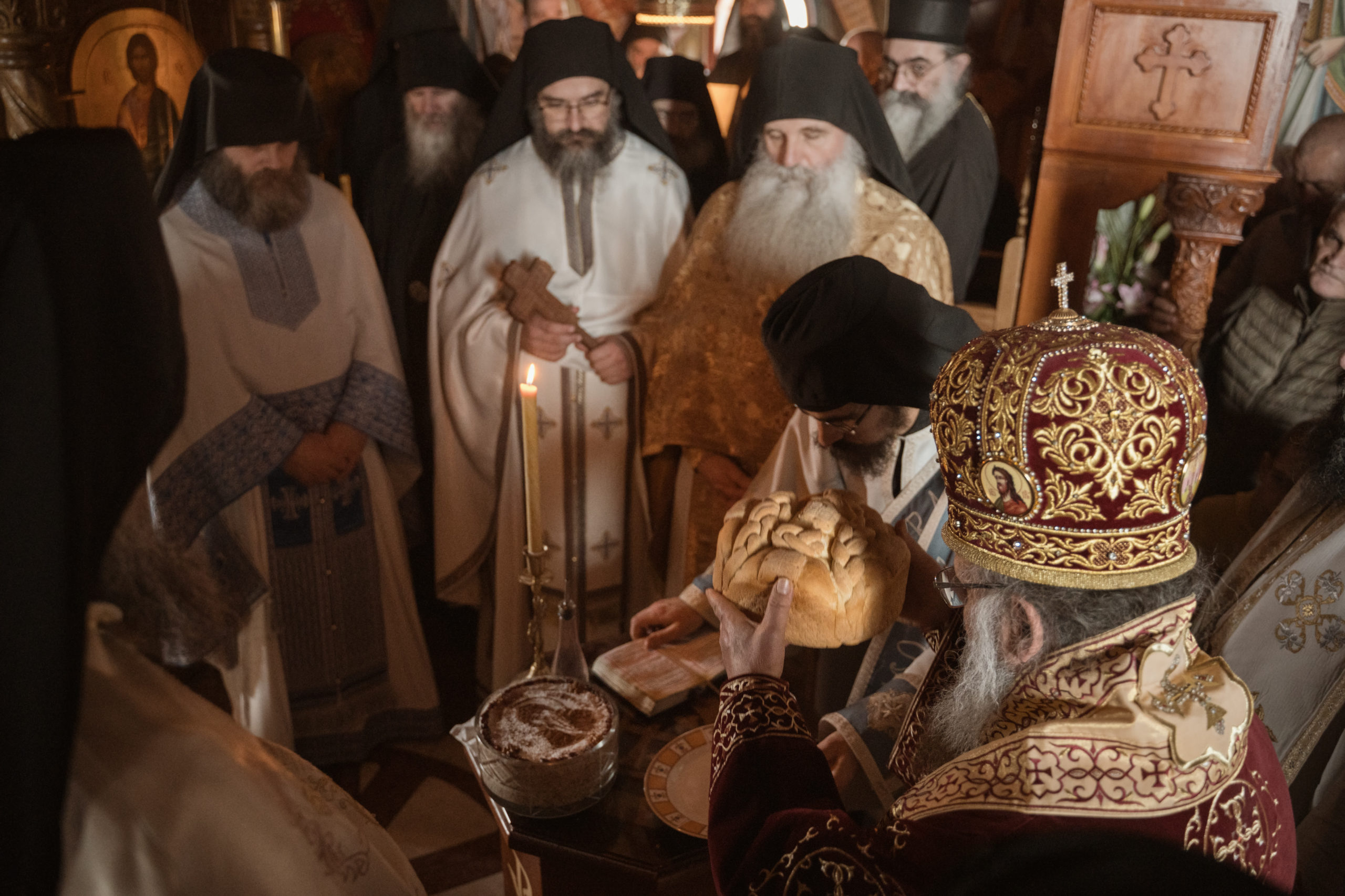 Након Свете Литургије Владика Николај је извршио чин резања колача и благосиљања жита, које је у част свог небеског саимењака принео Владика Ксенофонт.