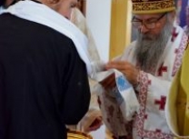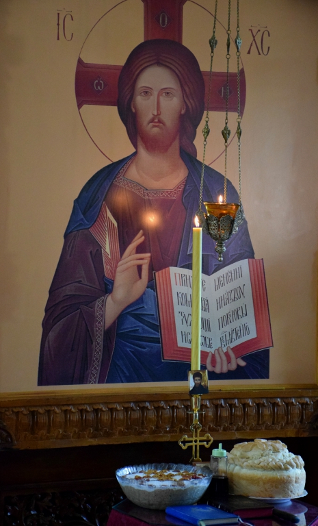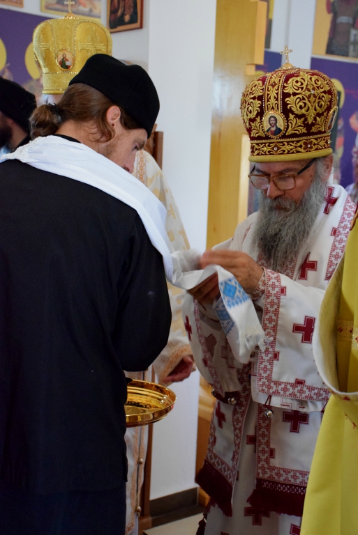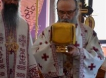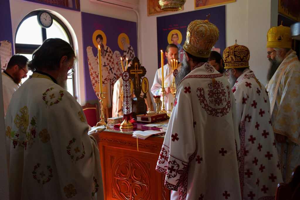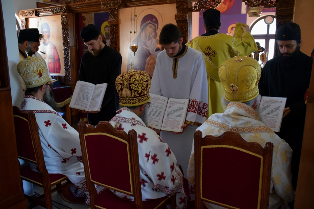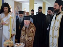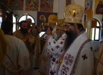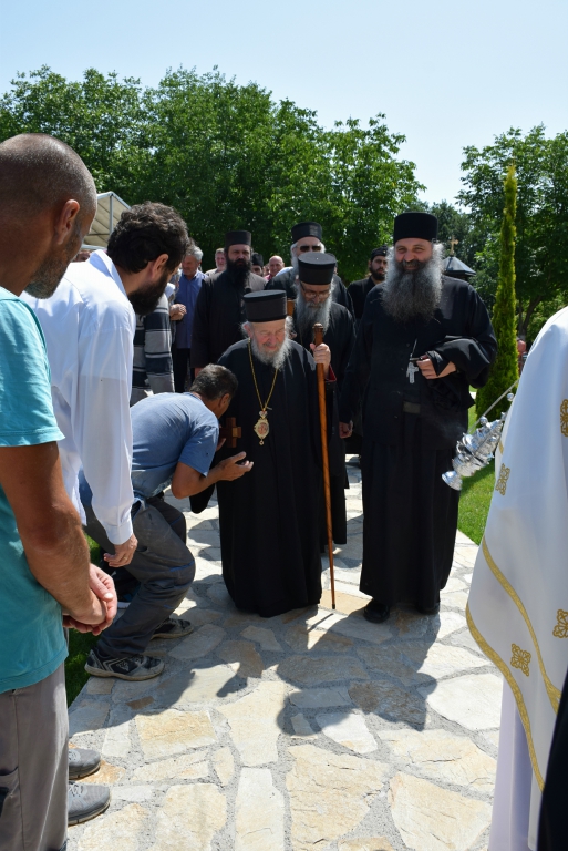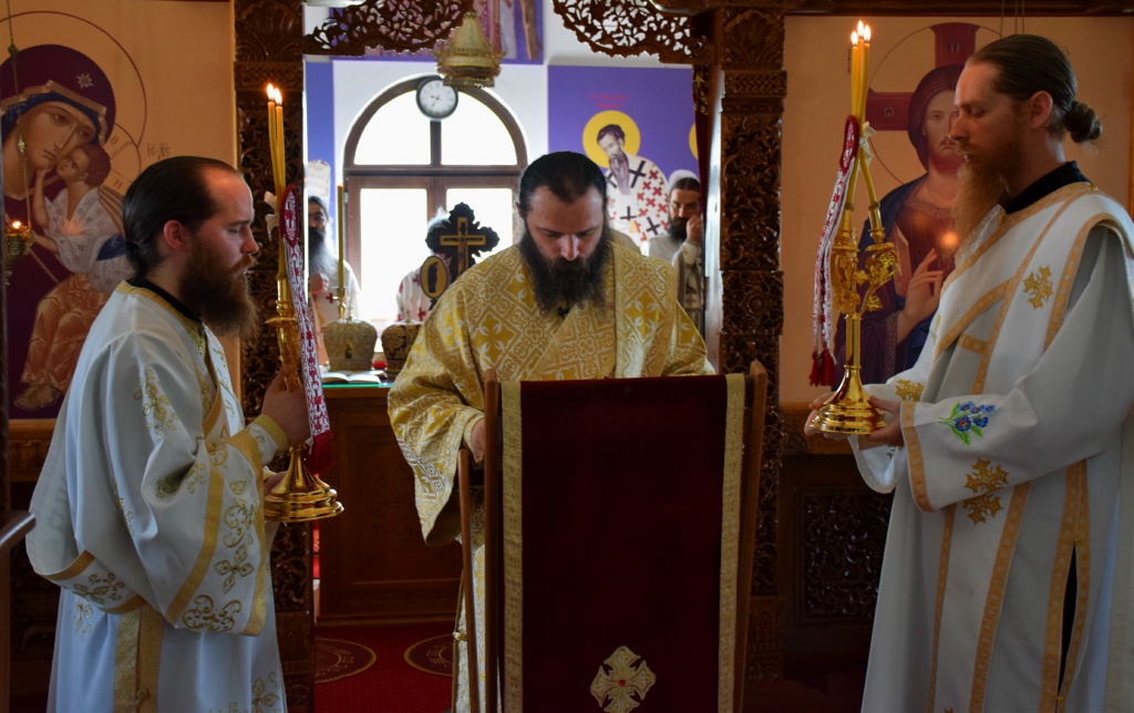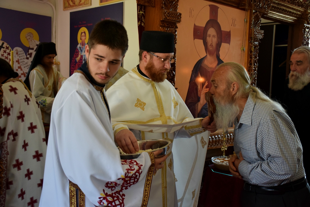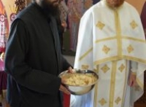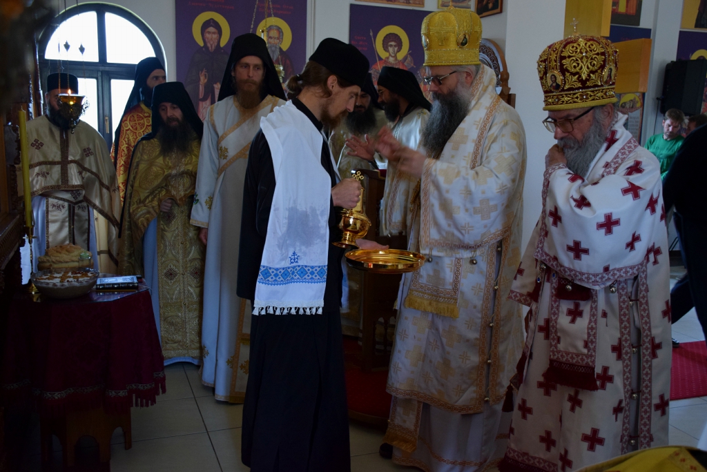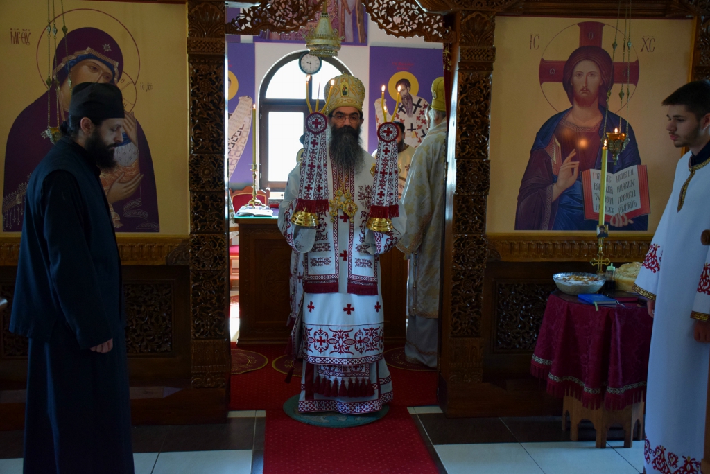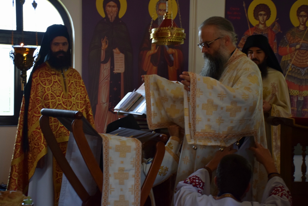 Након Свете Литургије, у манастирској трпезарији, Његово Преосвештенство Епископ рашко-призренски у егзилу Г.Г. Артемијe, обавио је чин резања славског колача и благосиљања жита које је у част Преподобног Наума Охридског принео Владика Наум.