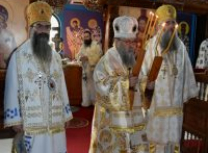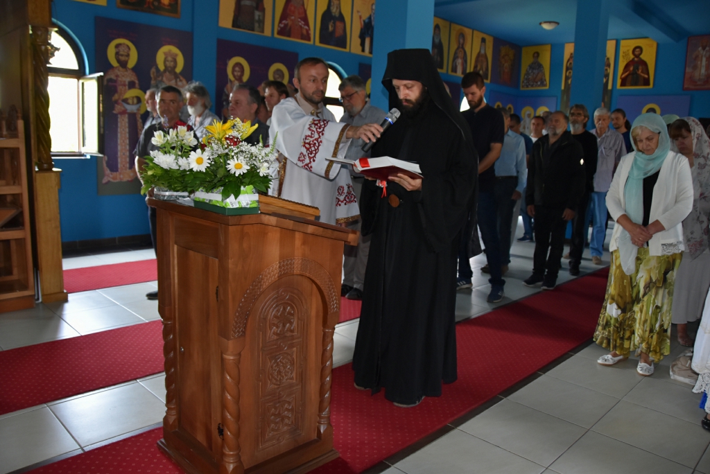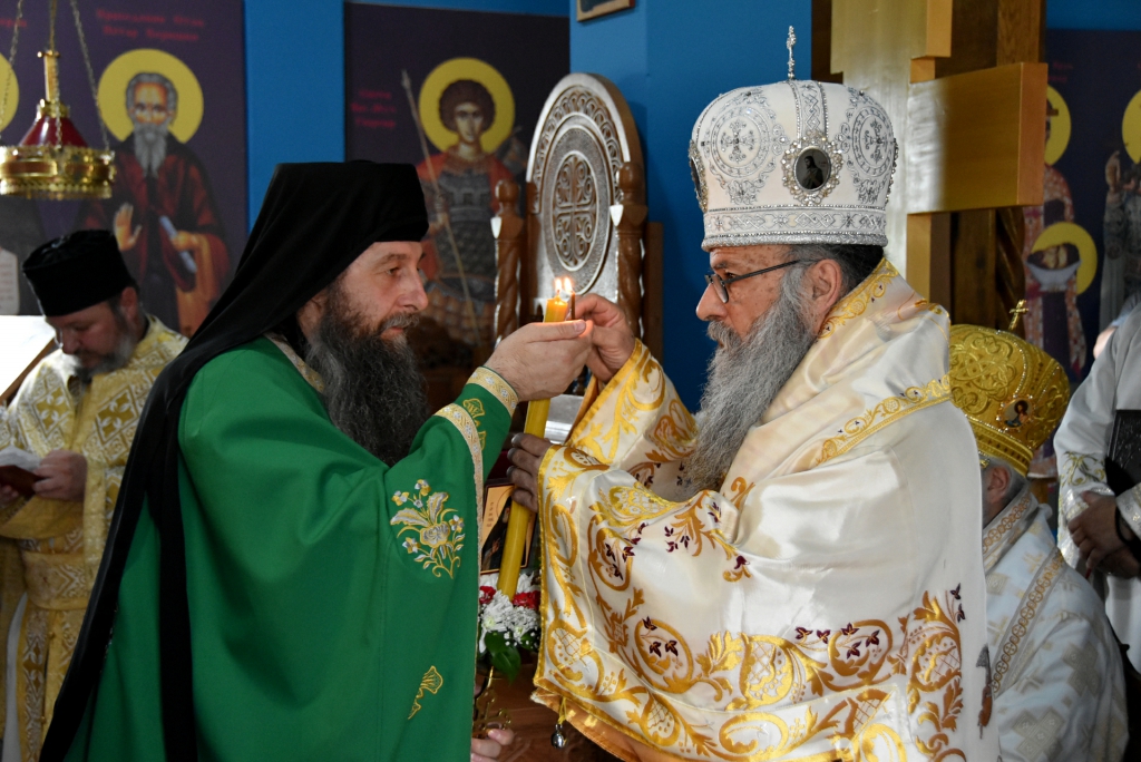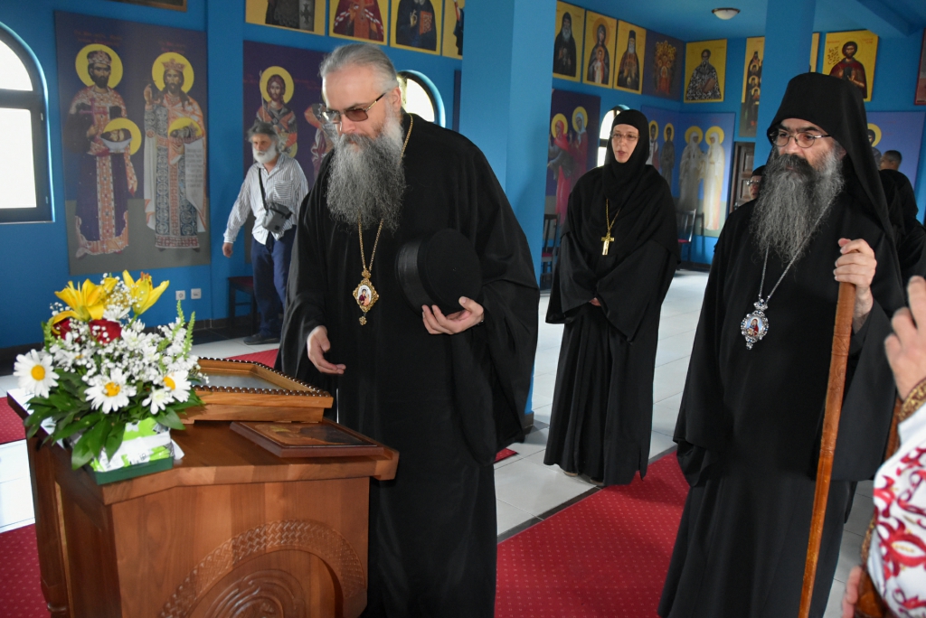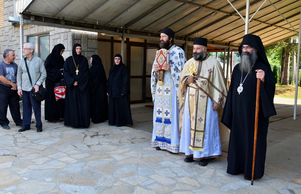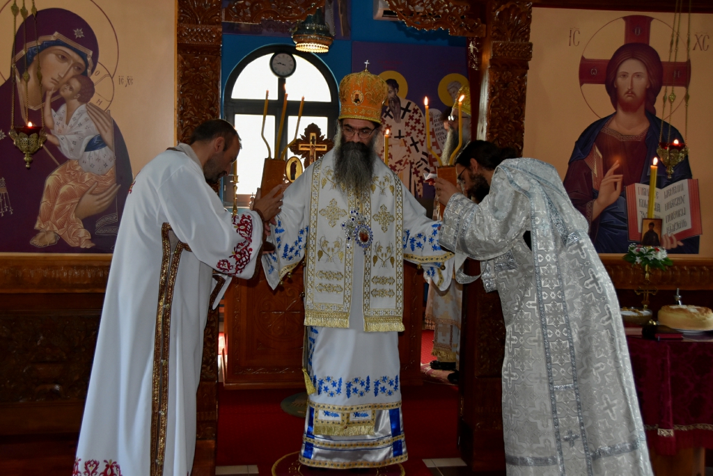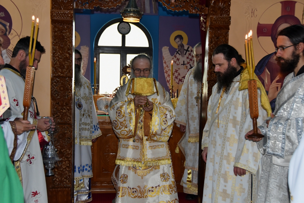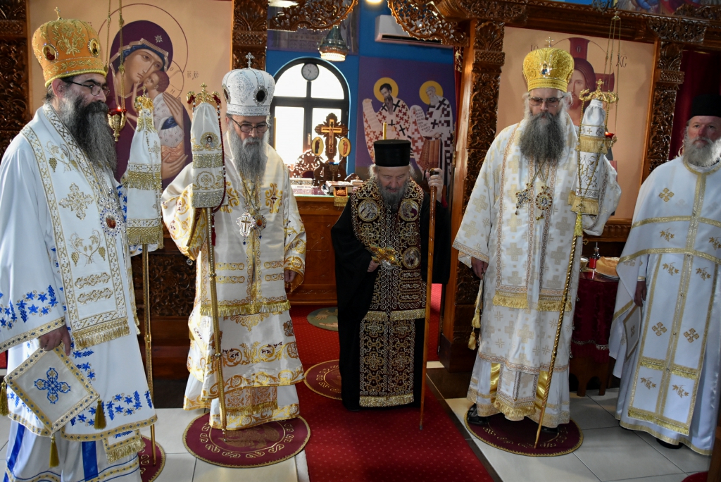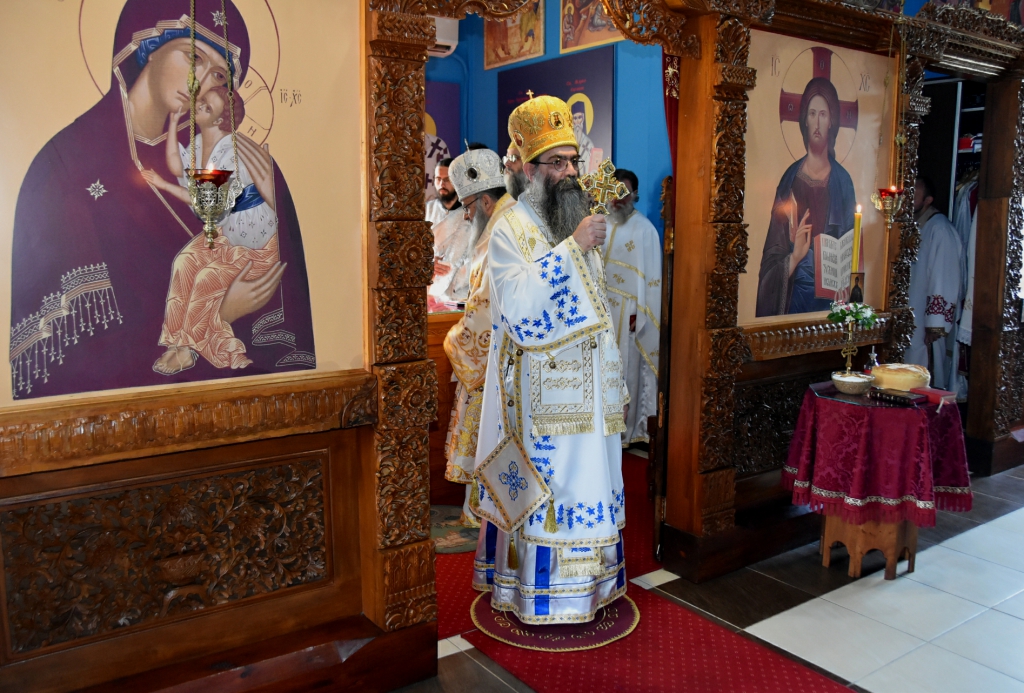 Након Свете Литургије, Његово Преосвештенство Епископ рашко-призренски у егзилу Г.Г. Артемијe, обавио је чин резања славског колача и благосиљања жита које је у част Преподобног Наума Охридског принео Владика Наум.
