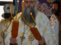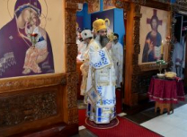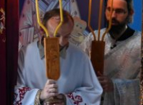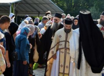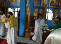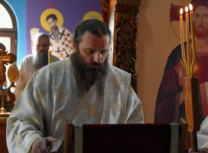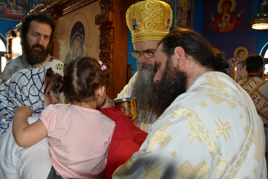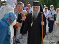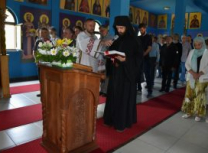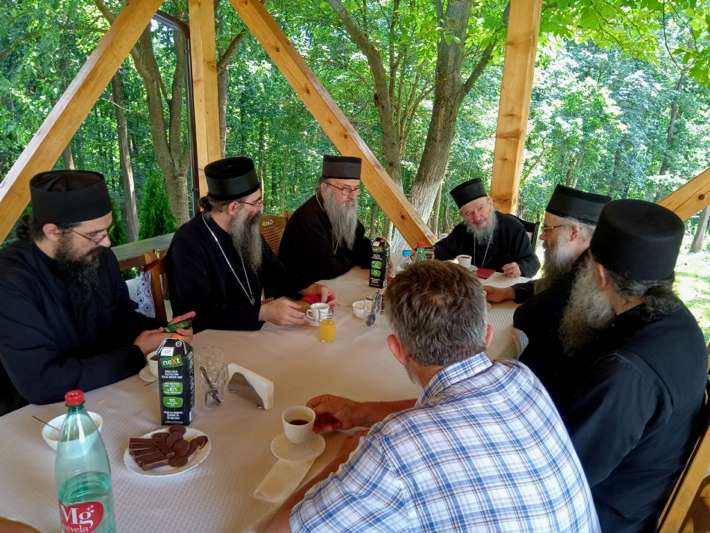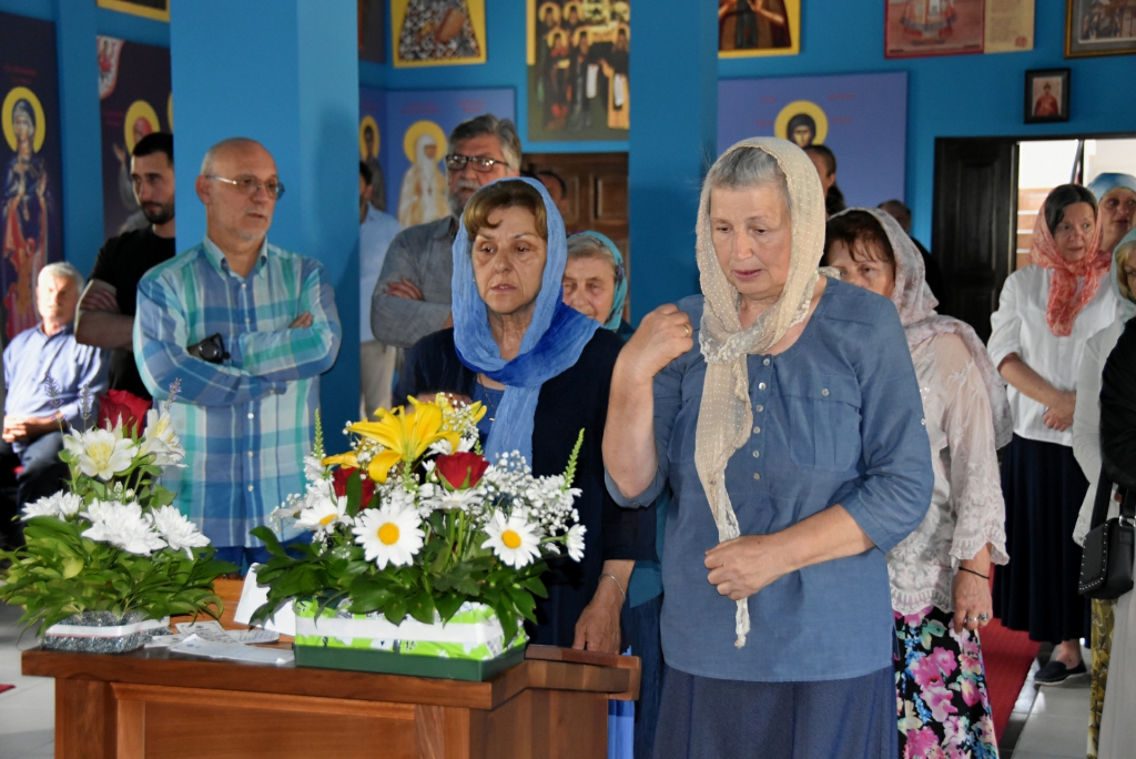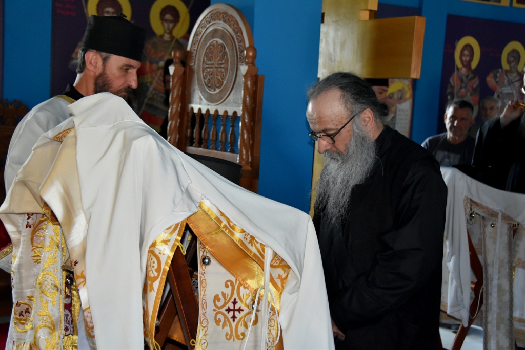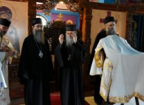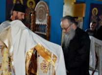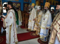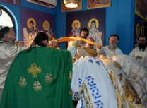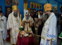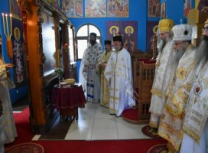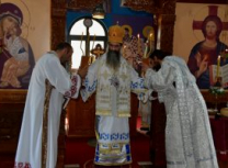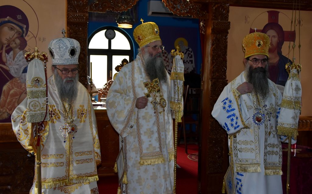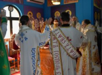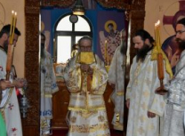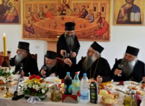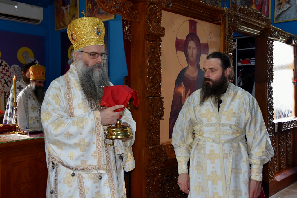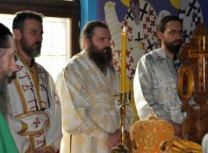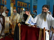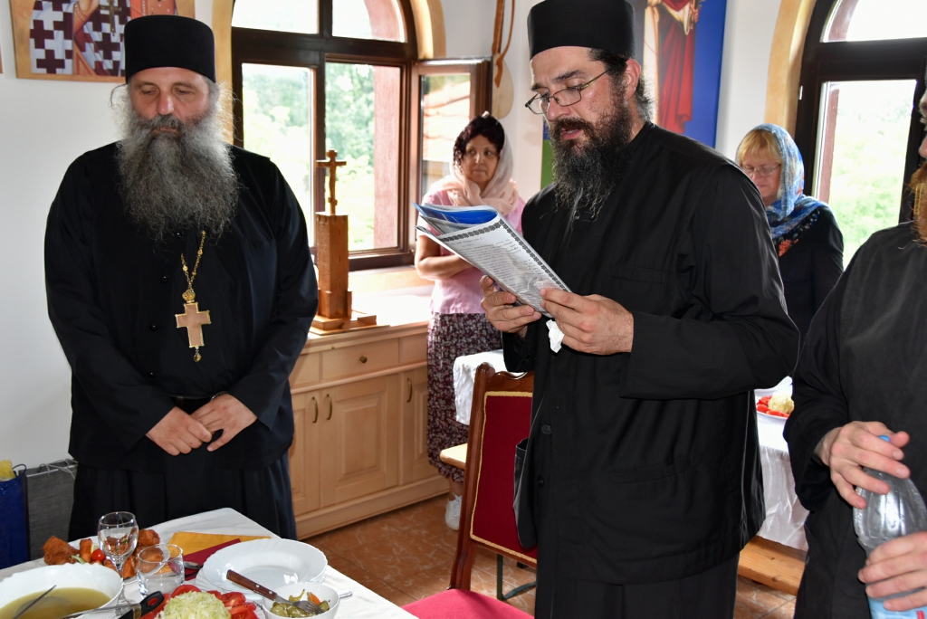 Након Свете Литургије, Његово Преосвештенство Епископ рашко-призренски у егзилу Г.Г. Артемијe, обавио је чин резања славског колача и благосиљања жита које је у част Преподобног Наума Охридског принео Владика Наум.