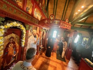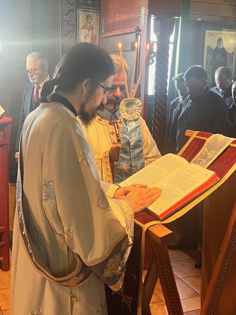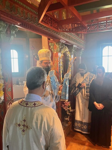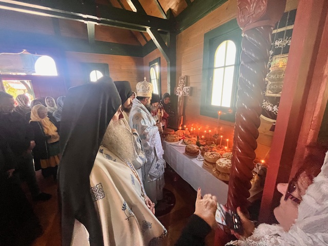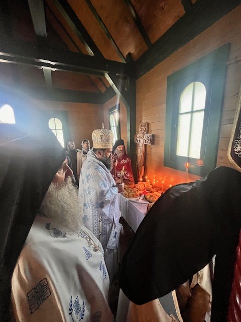 После Свете Литургије Епископ Ксенофонт је извршио чин резања славског колача и благосиљања кољива које су у част Светог Георгија принели монаси Митрофан и Артемије, ктитор манастира Милош Стефановић, и бројни свечари овог великог угодника Божијег.