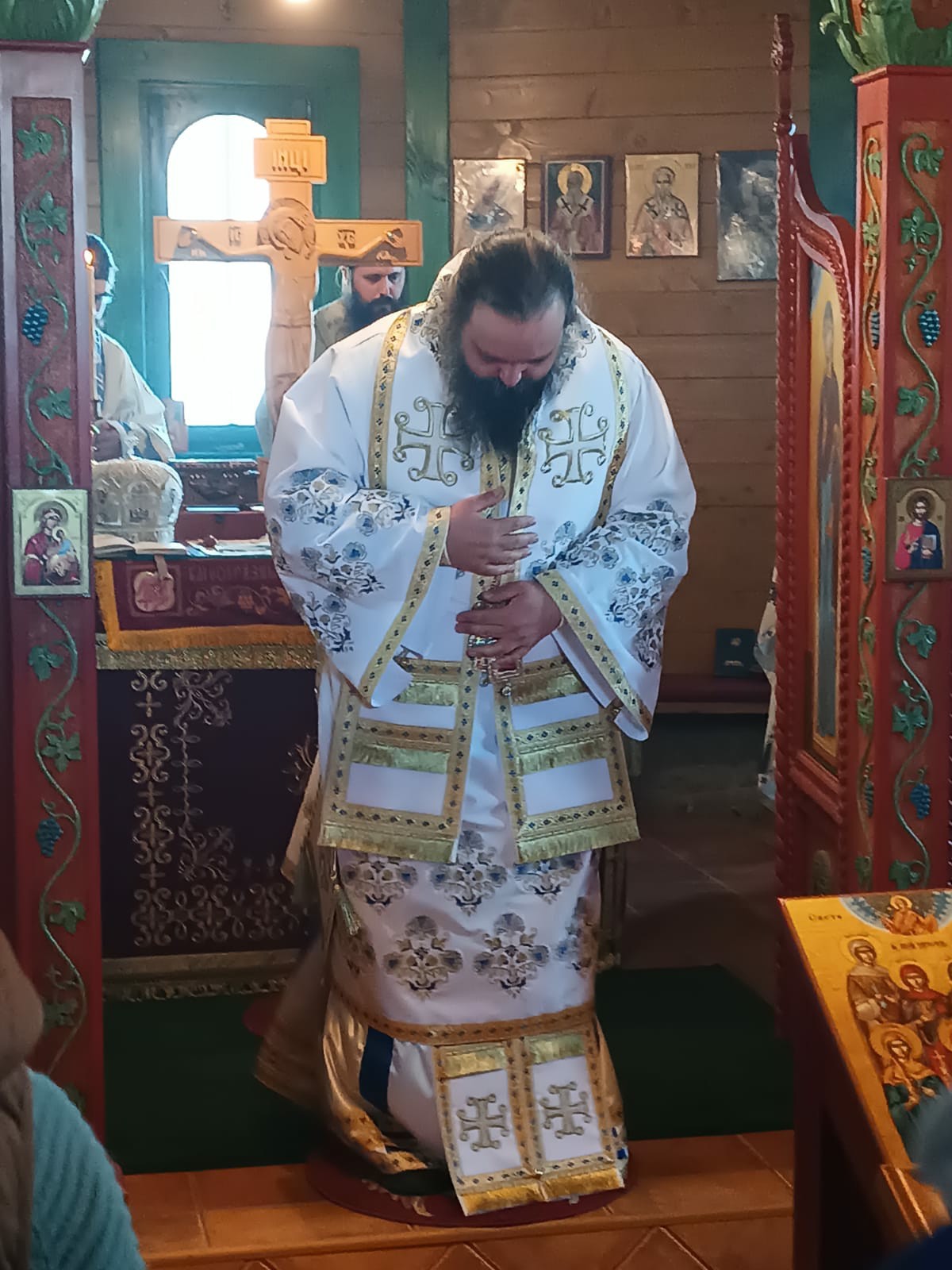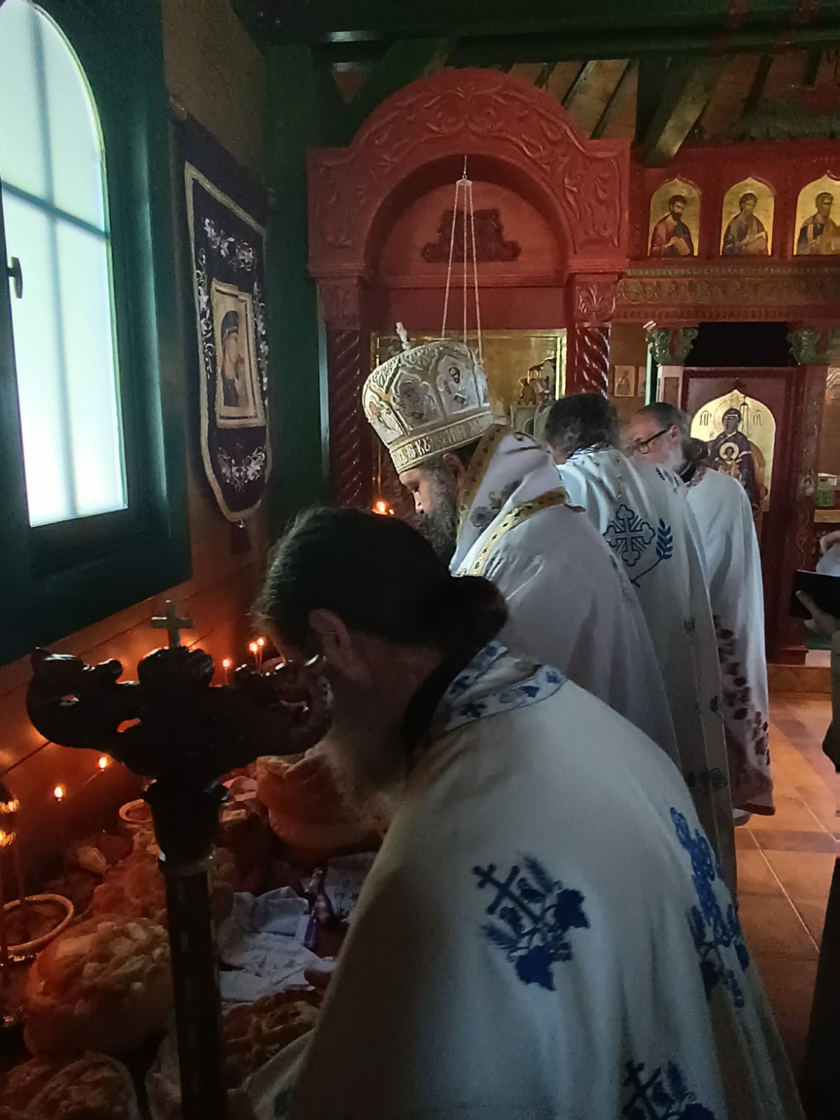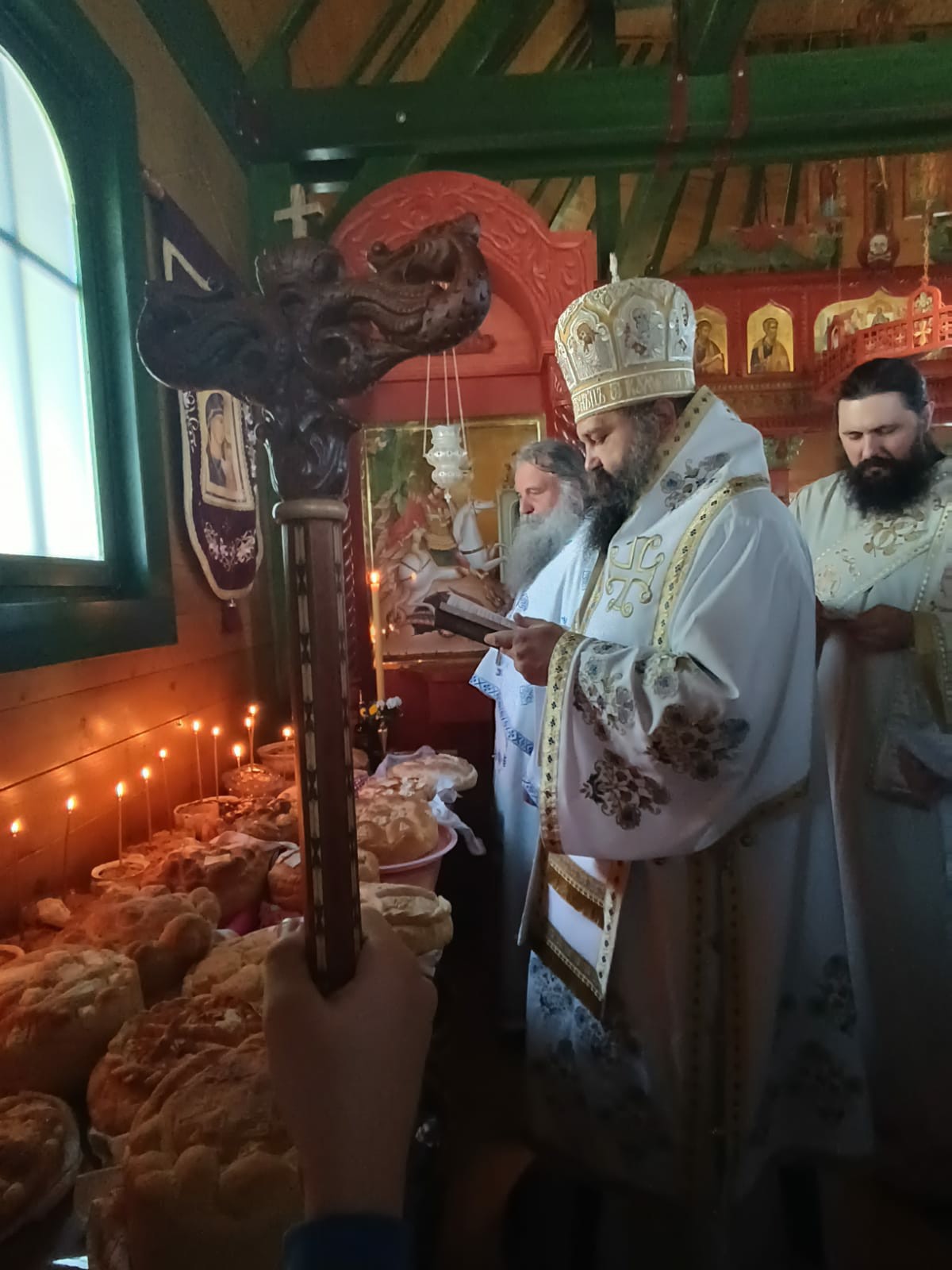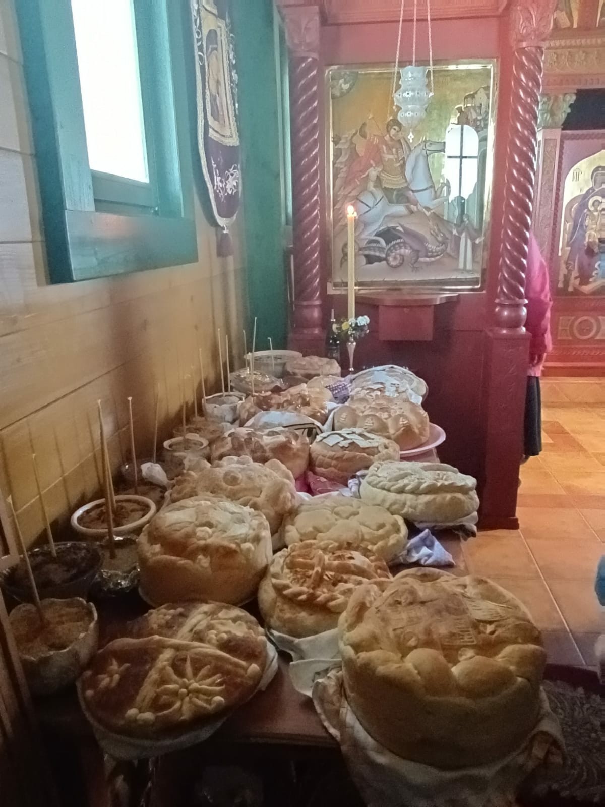 После Свете Литургије Епископ Ксенофонт је извршио чин резања славског колача и благосиљања кољива које су у част Светог Георгија принели јерођакон Георгије, монаси Митрофан и Артемије, ктитор манастира Милош Стефановић, и бројни свечари овог великог угодника Божијег.