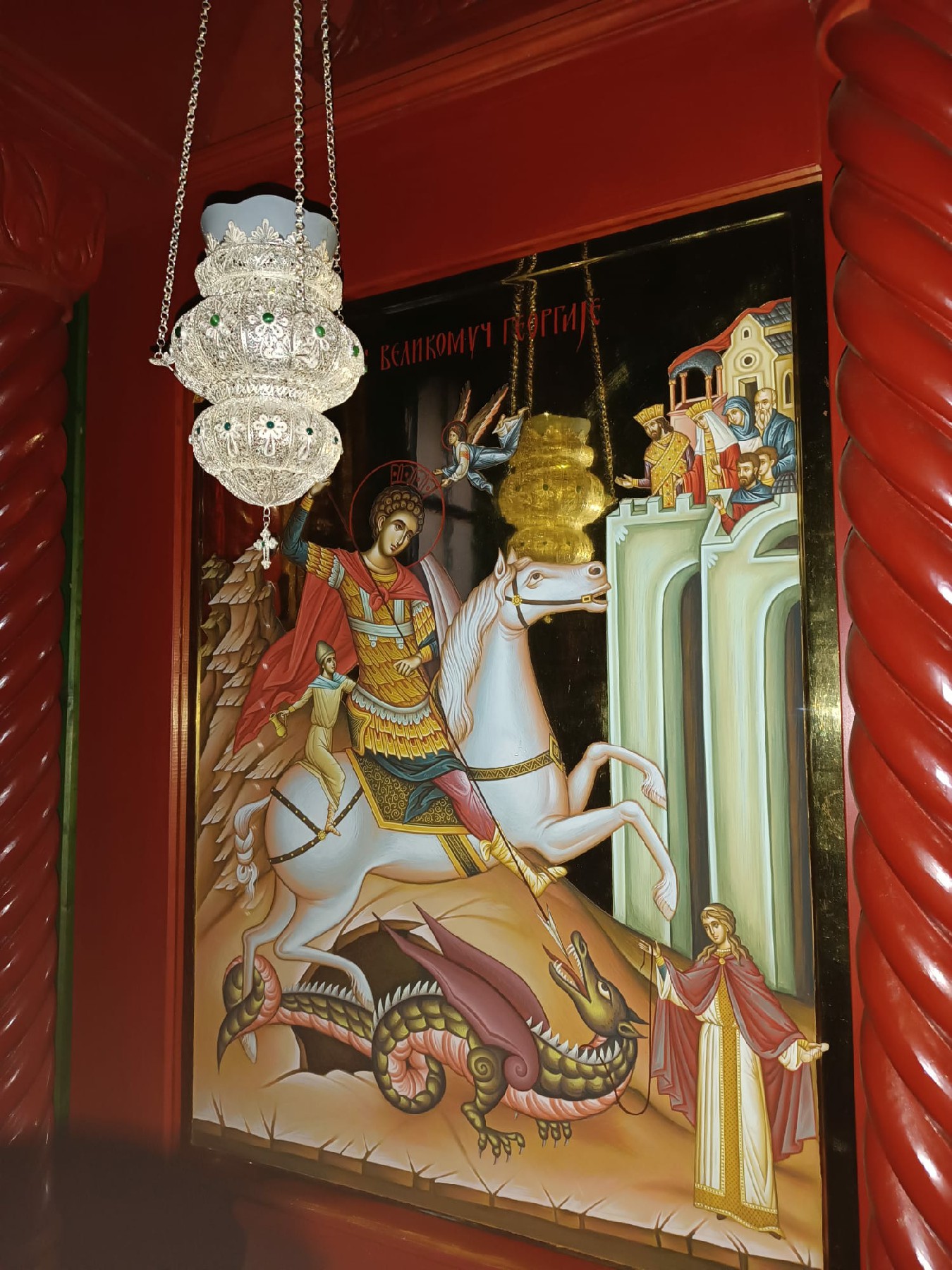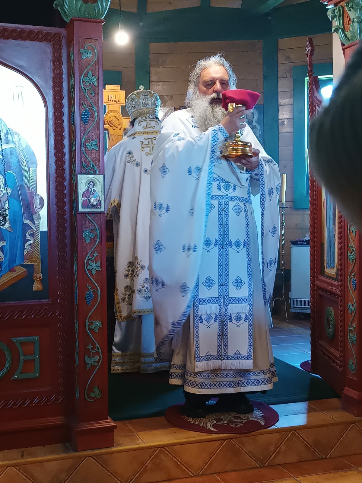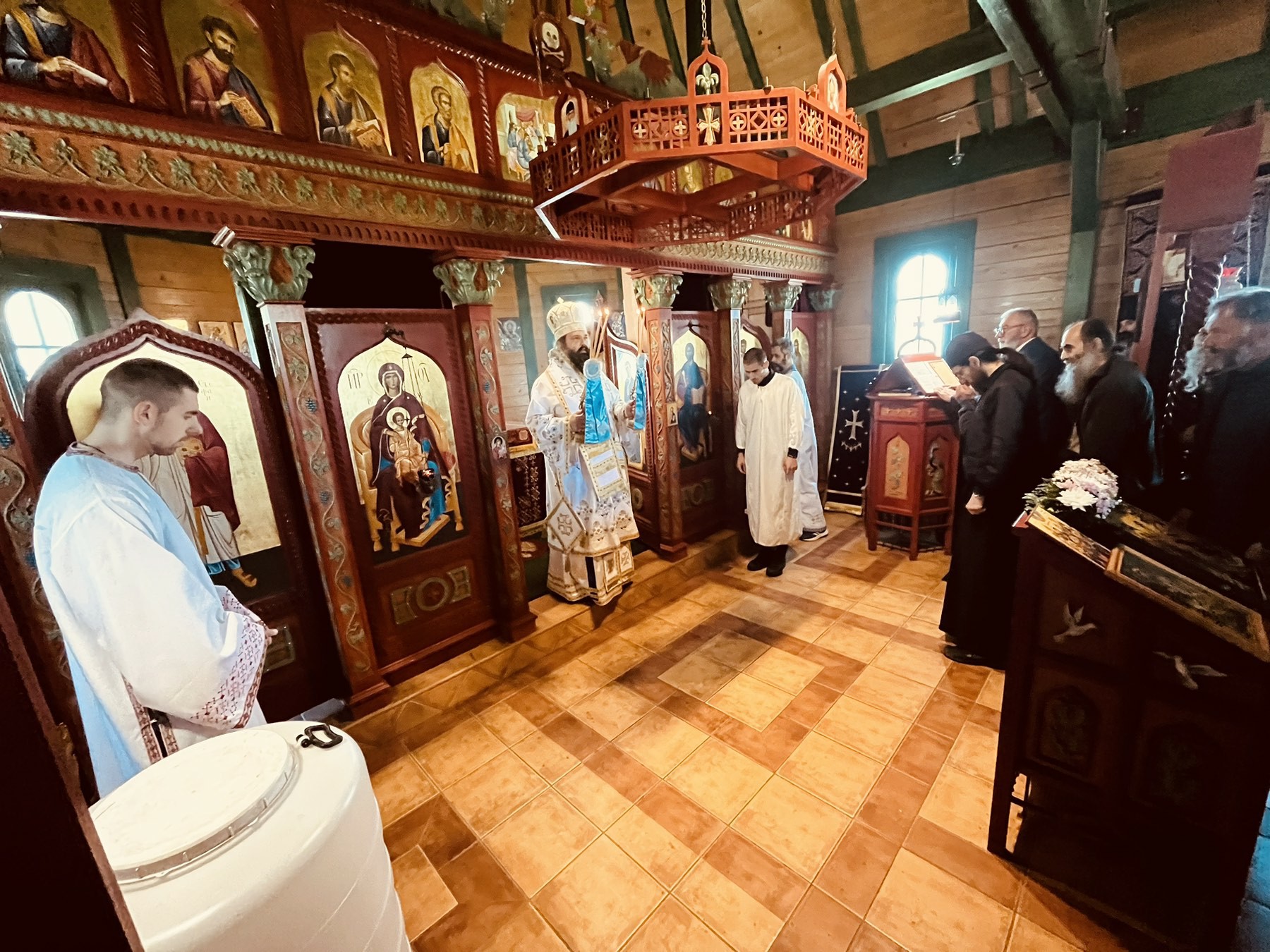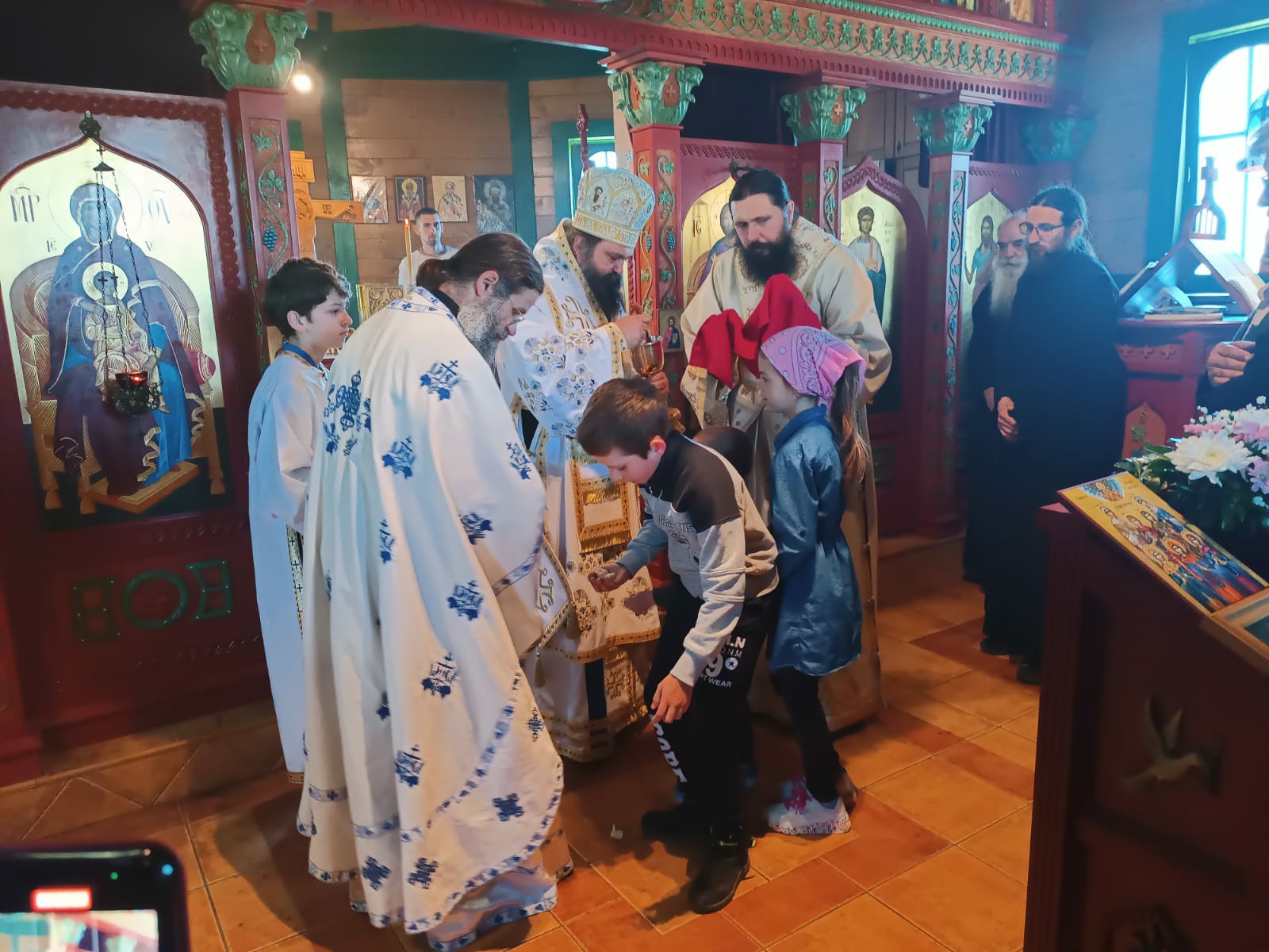 После Свете Литургије Епископ Ксенофонт је извршио чин резања славског колача и благосиљања кољива које су у част Светог Георгија принели јерођакон Георгије, монаси Митрофан и Артемије, ктитор манастира Милош Стефановић, и бројни свечари овог великог угодника Божијег.