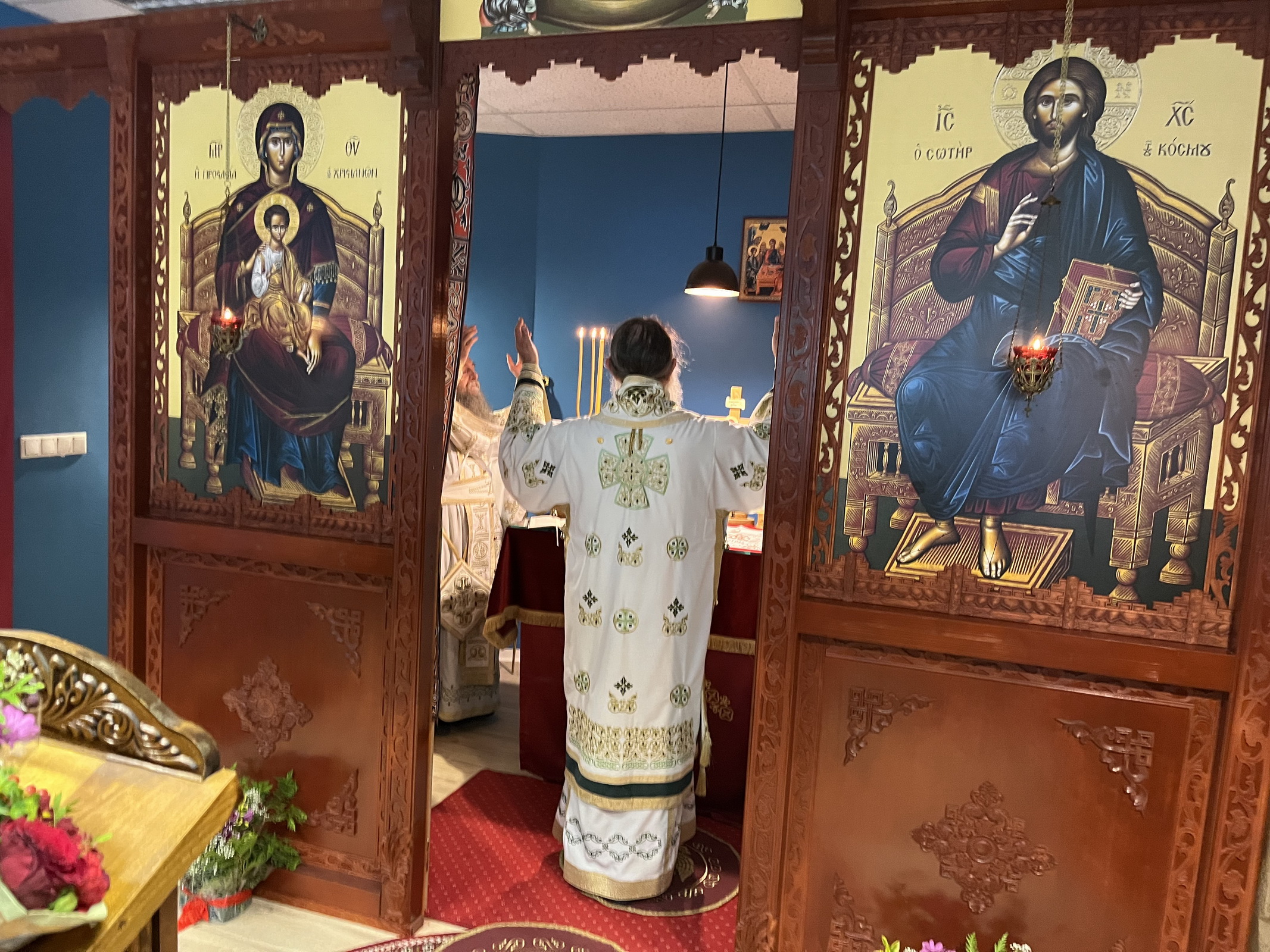 Поводом храмовне славе Покрова Пресвете Богородице, 1/14. октобра, Његово Преосвештенство Хорепископ хвостански и барајевски Г.Г. Наум служио је Свету архијерејску Литургију у истоименој катакомби у Франкфурту.Владики Науму су на Литургији саслуживали: протојереј Жељко Марић, протосинђел Димитрије (Ђоковић), протосинђел Игњатије (Станић) и јерођакон Лонгин (Милинковић). Литургији је присуствовало око 50 верника. Неки од њих су се причестили пресветим и животворним Тајнама Христовим.