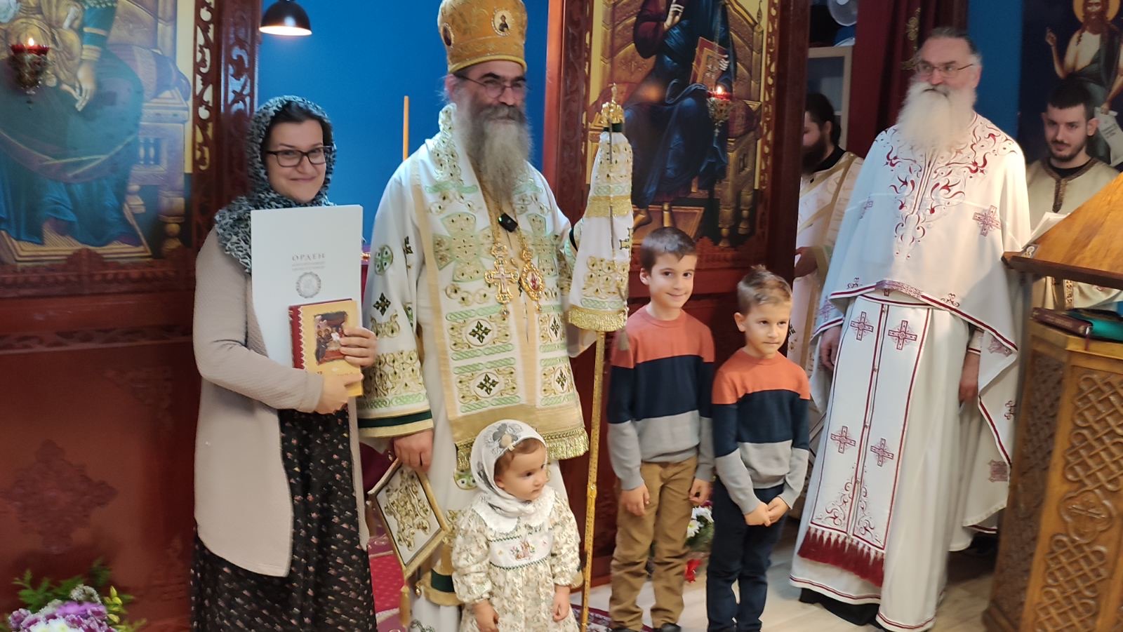 Овом приликом је владика уручио грамату и пригодну књигу сестри Марији Алксандровној из Хајделберга (Немачка), која је родила и одгајила троје деце. Марија није могла доћи на овогодишњи Сабор младости и родитељства у Мушветама, где се обично грамата уручује, па је то учињено овом приликом.