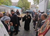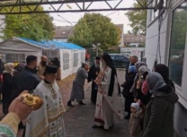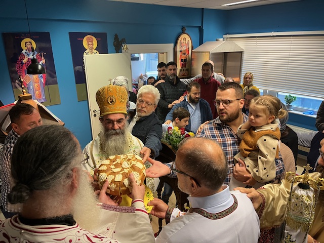 После Свете Литургије Владика Наум је извршио чин резања славског колача и благосиљања жита које су у славу и част Пресвете Богородице принели овогодишњи домаћини: Александар Стевановић из Кобленца, Ненад Китановић из Франкфурта на Мајни и Кристијан Гајић из Кронберга код Франкфурта на Мајни. За следећу годину за домаћине славе су се пријавили Александар Стојановић из Кобленца и Дарко Дубачкић из Офенбаха на Мајни.