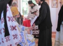 Након Свете Литургије Владика Наум је извршио чин резања славског колача и благосиљања жита које су у част светих мученика и бесребреника Козме и Дамјана принели братство храма и овогодишњи домаћин славе Јоксим (Барбуцић) из Борске Слатине. За наредну годину пријавили су се Синиша (Ристић) из Зајечара и Слободан (Митић) из Београда.