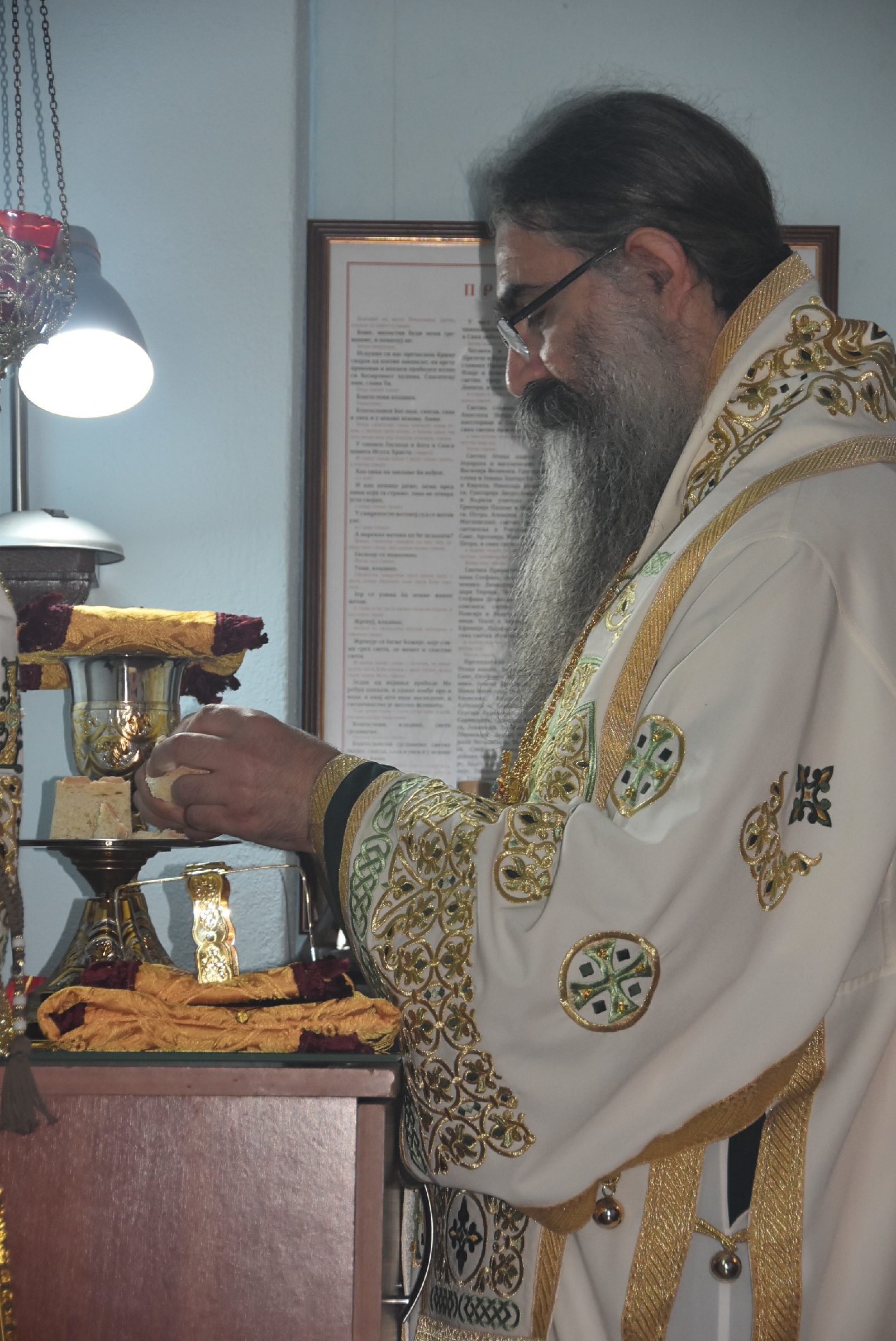 „Зато и јесмо на овоме путу на коме смо и зато се молимо у овим нашим катакомбама и зато подижемо и нове храмове и нове обитељи у славу Васкрслога Христа и Његових светитеља, па тако и овај храм, ову цркву. А да се надовожем на ријечи Владике Наума. Имате овде, хвала Богу, уз Велику Мораву и у овом крају велике светиње, ево управо у близини вашој неколико манастира и Миљков манастир, Златенац и Добреш и Томић и сви су ту. Као што имамо Свету Гору у Грчкој тако имамо и српску Свету Гору уз Западну Мораву, ево хвала Богу и уз Велику Мораву, у вашем крају, прави се нова Света Гора и ничу манастири. Надамо се и Богу се молимо да и ти, увјерен сам дубоко побожни, истинољубиви и богољубиви, боготражитељи који су у тим манастирима да и они још усрдније посведоче своју љубав према Ваксрслом Христу не слажући се са новотаријама, јересима, које се ево нажалост до краја 20. вијека, и ево почетком овога 21. вијека проповедају и у нашој помесној Цркви и са многих амвона и испод многих архијерејских митри и свештеничке одјеће, па нека би дао Бог да и ти ревнитељи по манастирима, за које не сумњам да су истинске слуге Божије, да су у манастир дошли Богу да служе, али да ће Бог да их надахне да још више и још одлучније, још ревносније проповедају неизмјењену вјеру православну и вјеру хришћанску“.
