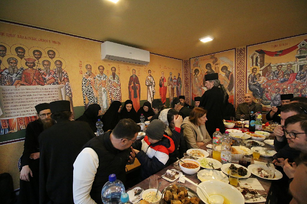 Уследила је трпеза љубави припремљена од стране манастирског братства и овогодишњих домаћина славе.