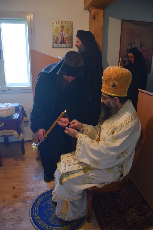 Након Свете Литургије владика Наум је извршио чин резања славског колача и благосиљања кољива које су принели братство манастира и овогодишњи домаћин славе Мирко Пушељић из Бања Луке. За идућу годину, за домаћине славе, пријавили су се Зарић Миливоје, Митић Слободан и Милан Перковић, сви из Барајева.