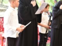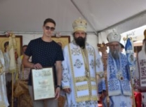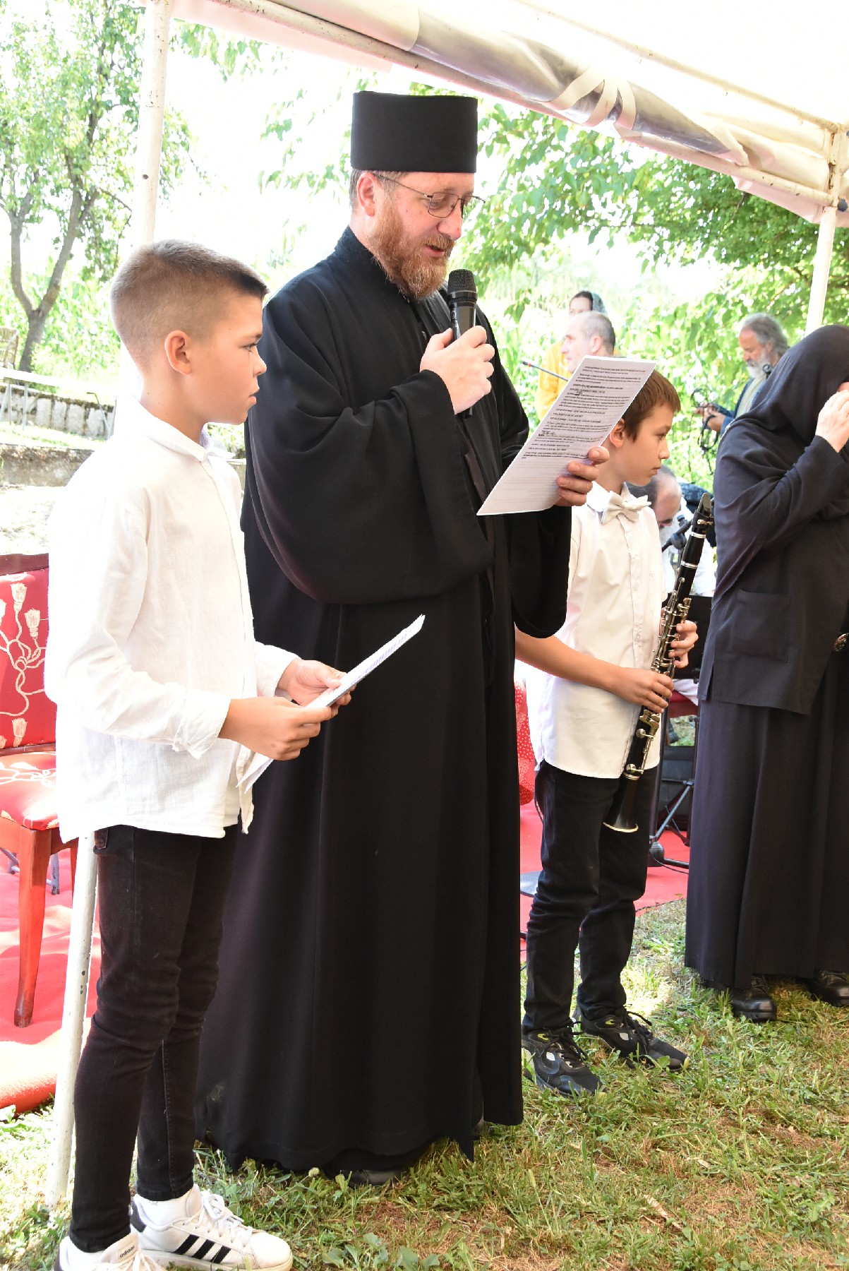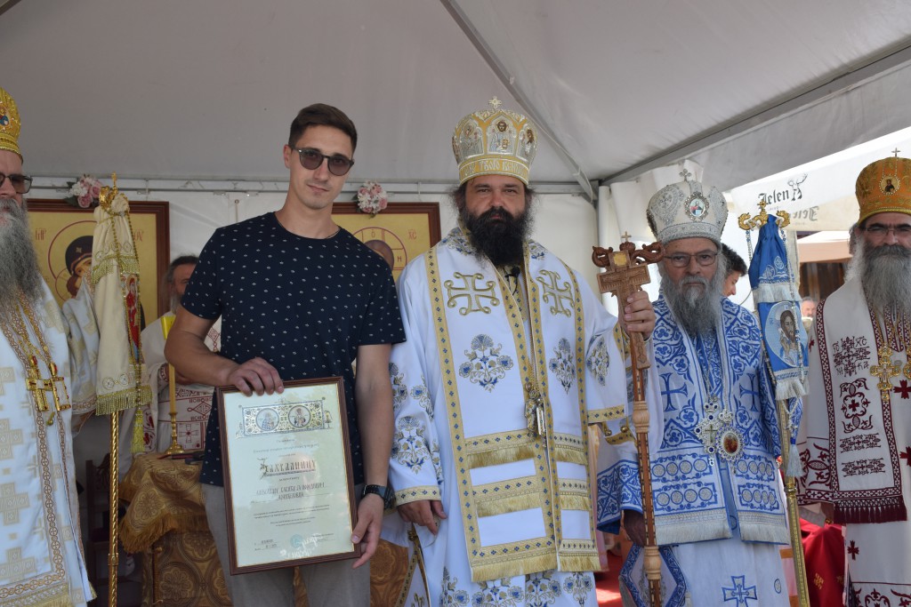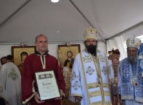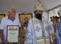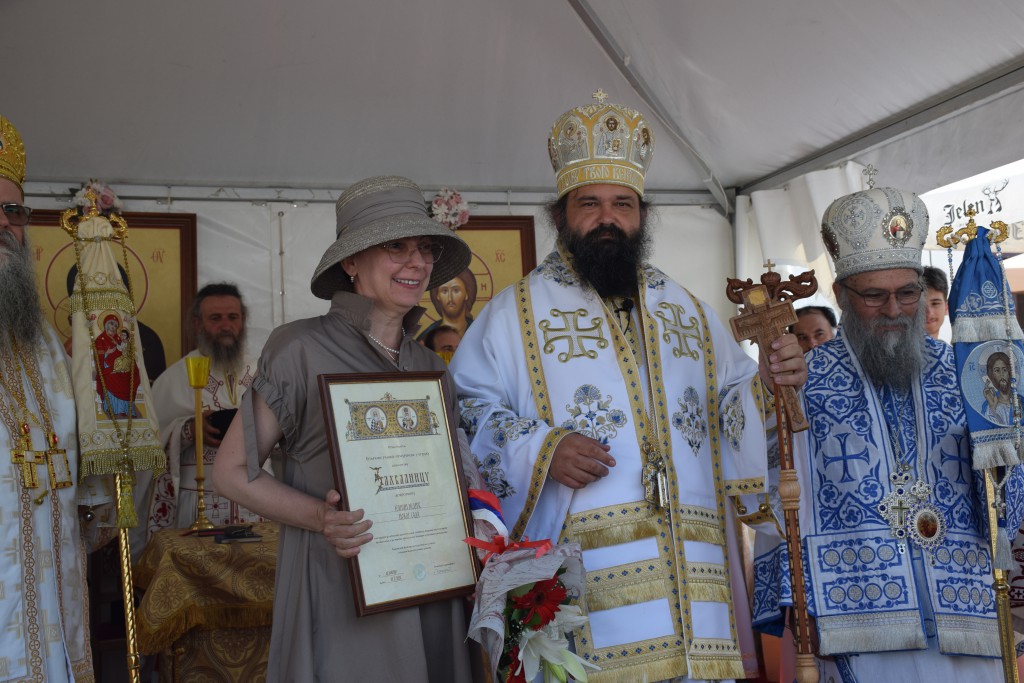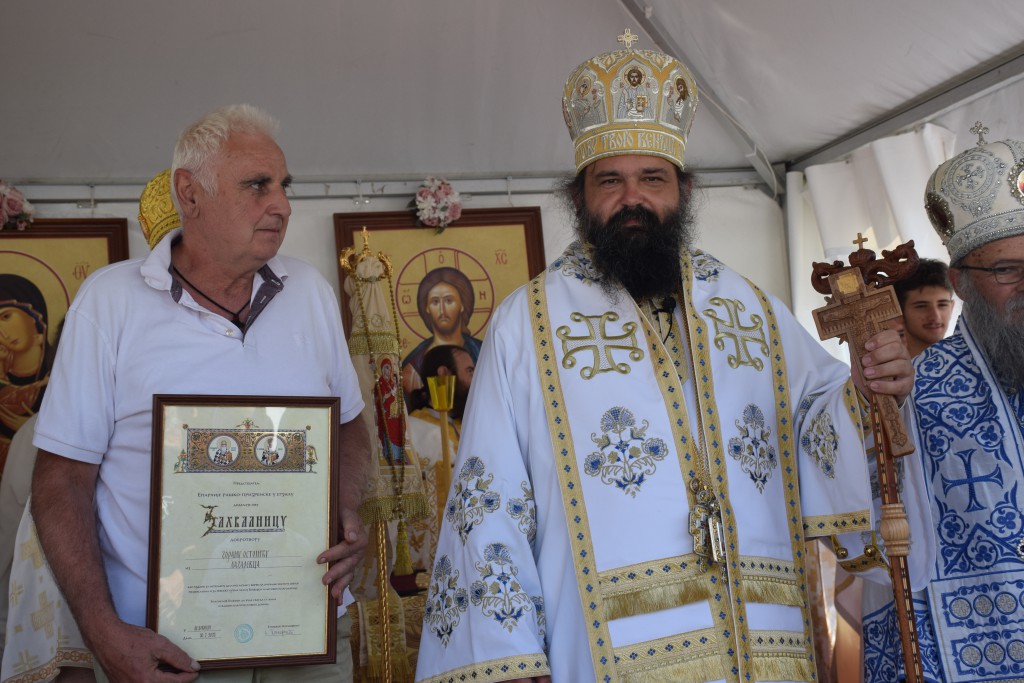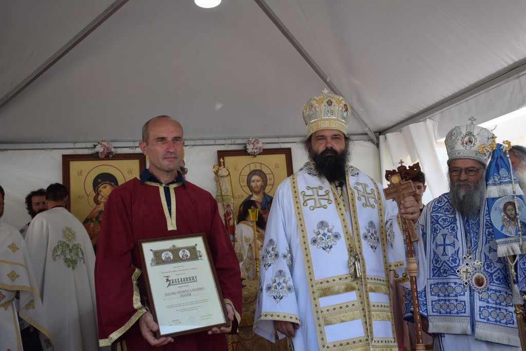 Потом је Владика Ксенофонт уручио захвалнице добротворима манастира: Александру Бабићу са породицом из Аранђеловца, Јелици Недић из Новог Сада, Остојић Зорану из Лазаревца и Радославу Мићовићу са породицом из Лазаревца.