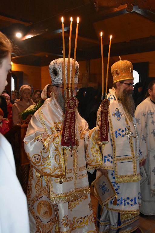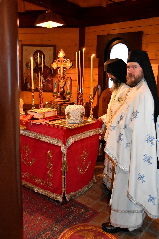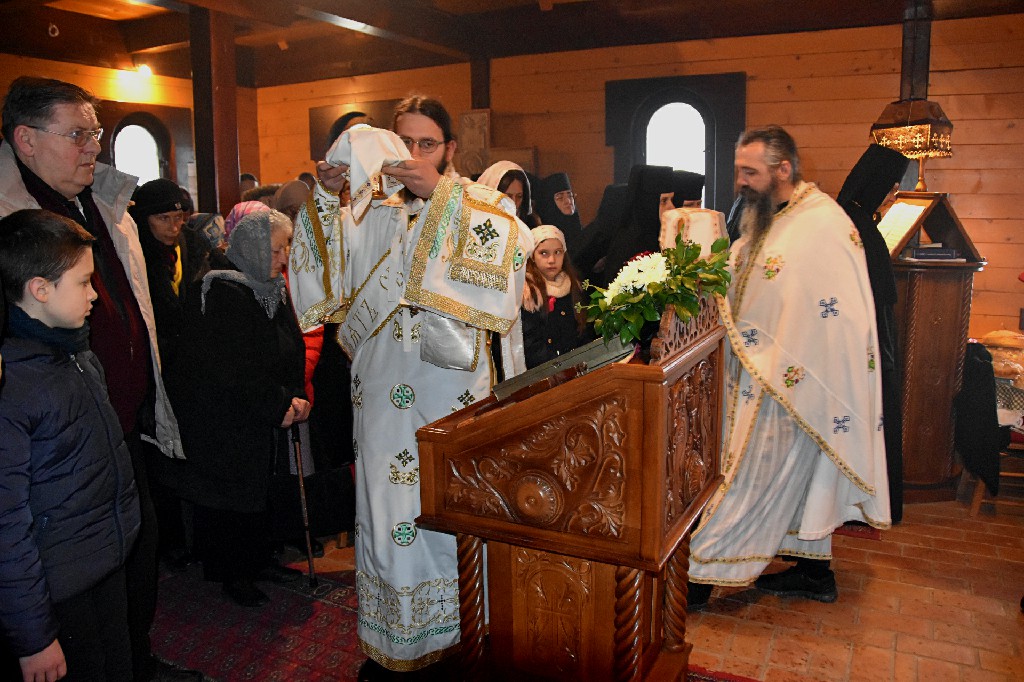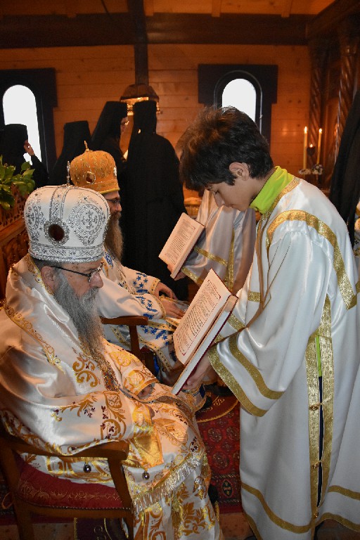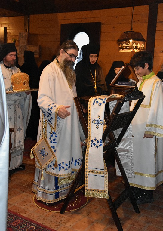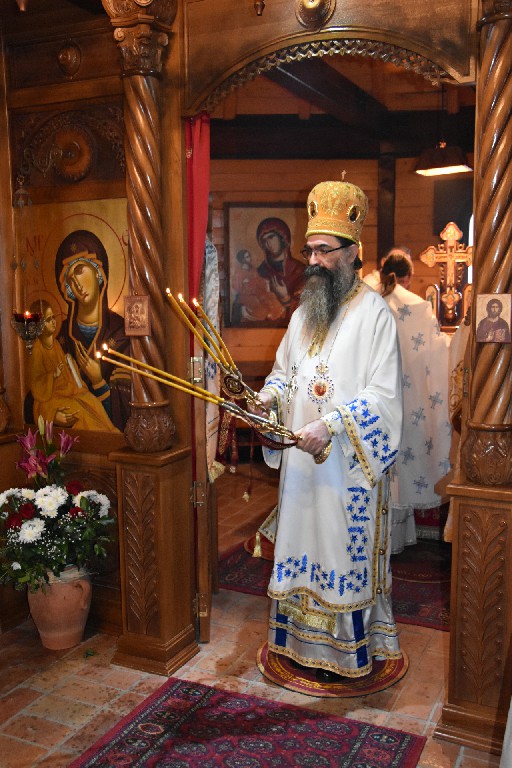 „Величина једног светитеља мери се по броју душа које он приводи Богу. А он је безбројне људске душе од греха одвојио и Господу принео као највећу жртву. Ето, данас када њега прослављамо, угледајмо се на његове врлине јер због тога су светитељски празници и установљени, да прослављајући светитеље Христове, подражавамо их у њиховом животу. Јер ако то не чинимо браћо и сестре, него грешно живимо, и само трбухом својим светитеље Божије прослављамо, онда нам они буду тужитељи пред Богом. Због тога се потрудимо да и ми своју веру чувамо, бранимо, као што је он бранио. Сетимо се оног примера на Првом Васељенском Сабору, где је он био учесник, када је у ревности својој за праву веру ошамарио Арија. Због тога му је чин био одузет и епископски знаци, али Господ и Мајка Божија су се јавили у виђењу неким старијим Епископима и објаснили им да је то ревност за истину Божију и правду Божију, а не неразумни гнев, како су они мислили. И још ревнујмо у правдољубљу. Будимо правдољубиви, делима својим и животом својим проповедајмо правду Божију и правду међу људима. Будимо и милосрдни знајући да дела милосрђа очишћују многе грехе наше. Свако дело милосрђа, чисти душу од грехова. А ми монаси који не можемо чинити материјална дела милосрђа, јер немамо ништа своје, чиме можемо ми Бога да умилостивимо? Приносом духовне милостиње, драга браћо и сестре, монаси, јер претрпети слабост брата или сестре, ружну реч и свако искушење у манастиру са смирењем и трпљењем и љубави према Богу, према брату и сестри ̶ то је духовна милостиња, много већа од оне телесне милостиње. Имајмо то на уму. Колико је душа претежнија од тела, толико је трпљење и смирено подношење искушења веће од материјалне милостиње. Дакле, ми монаси имамо итекако пример, итекако начин да Богу духовну милостињу приносимо и да будемо слични Светом оцу нашем Николају“, нагласио је Владика Наум.