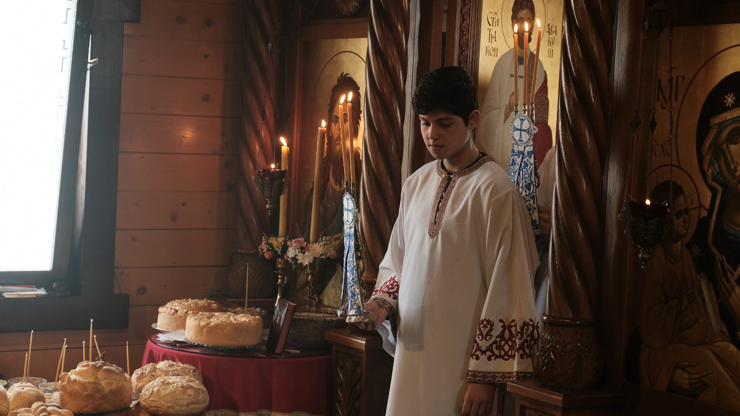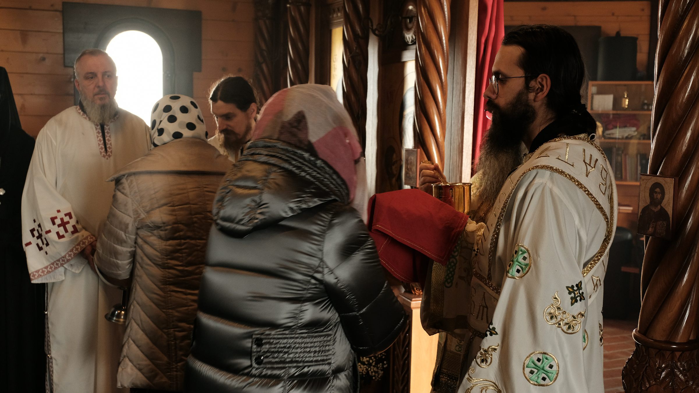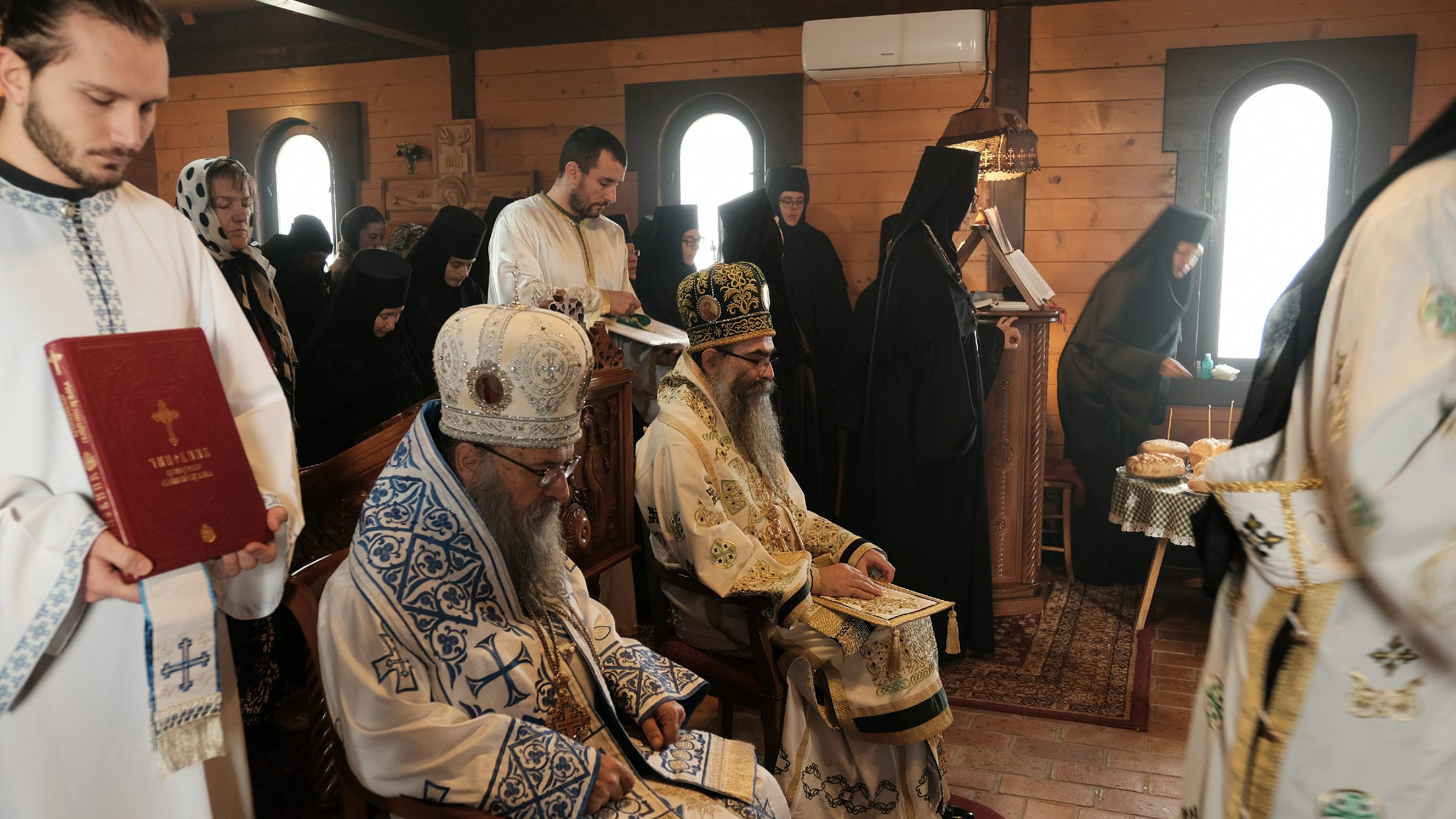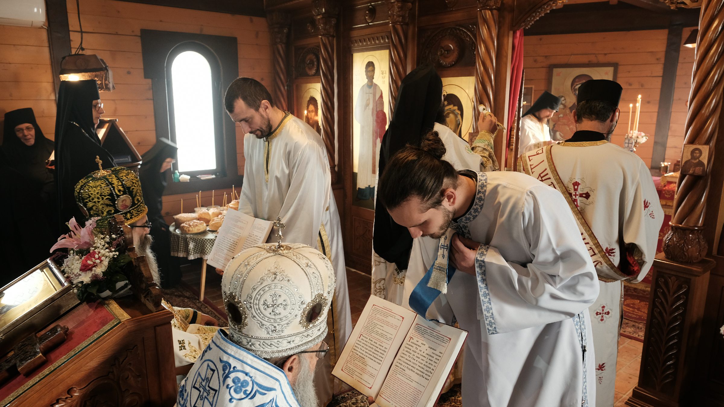 На Литургији се већи број присутних светосаваца сјединио са Господом кроз Свето Причешће. Након Литургије Владика Наум обавио је чин резања славског колача и благосиљања жита које су у част Светог Николаја принели Владика Николај, игуманија Сара са сестрама и ктитор манастира Милоје Стевановић, свечари Светог Николаја.
