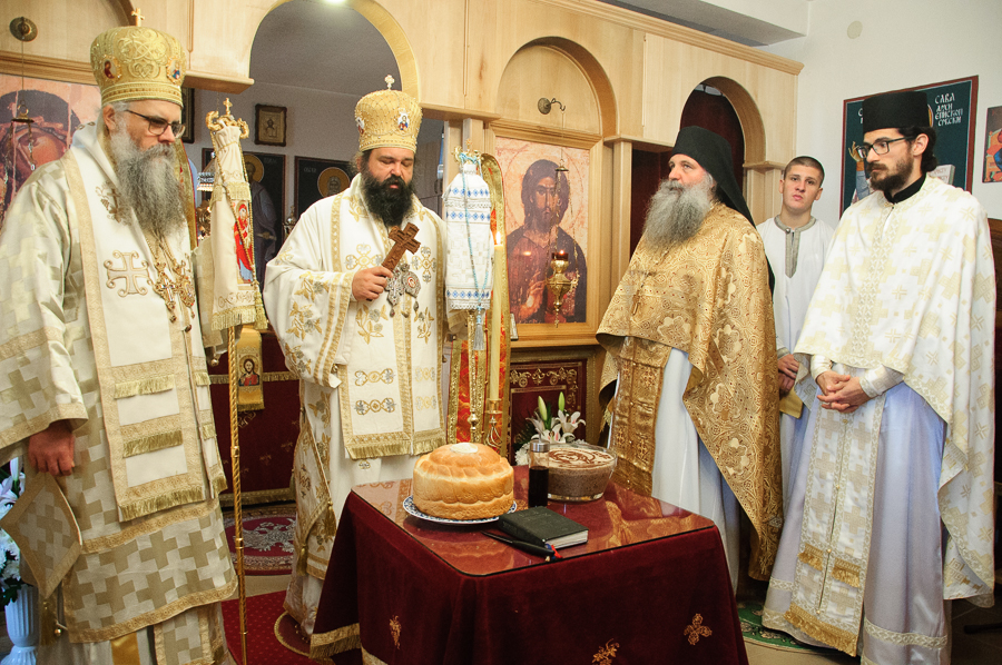 Након Литургије Владика Ксенофонт је извршио чин резања славског колача и благосиљања жита које је у част Свете Петке принео славар Свете Петке – Владика Максим.