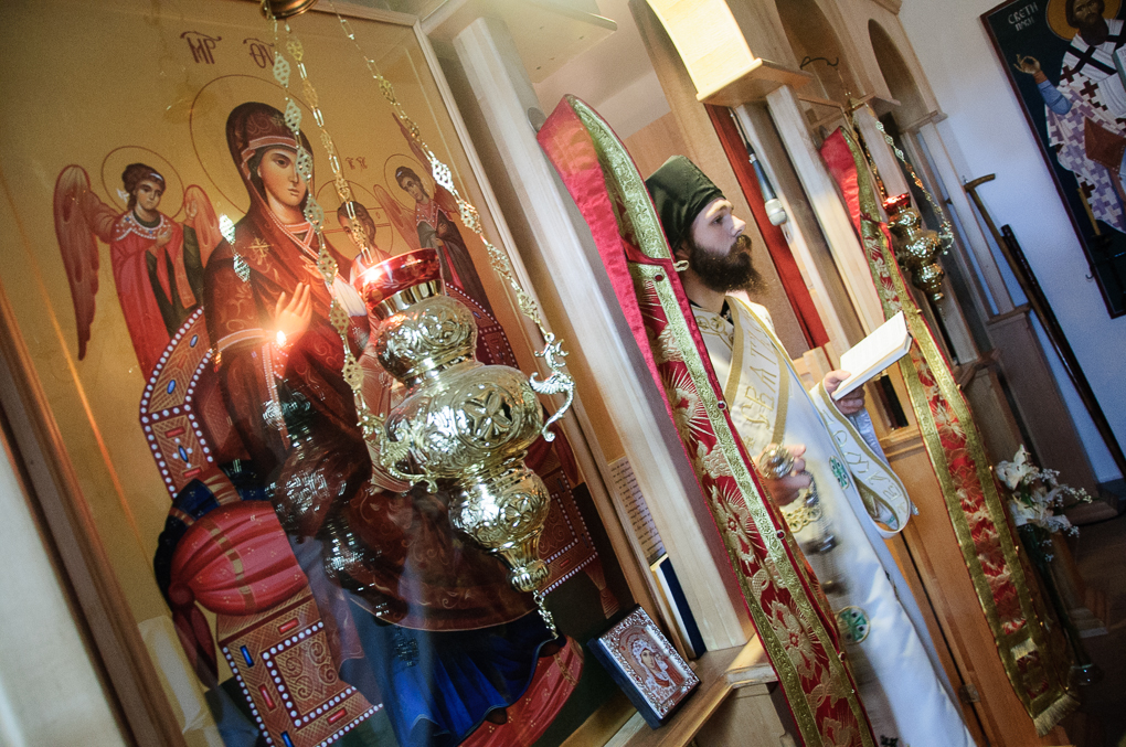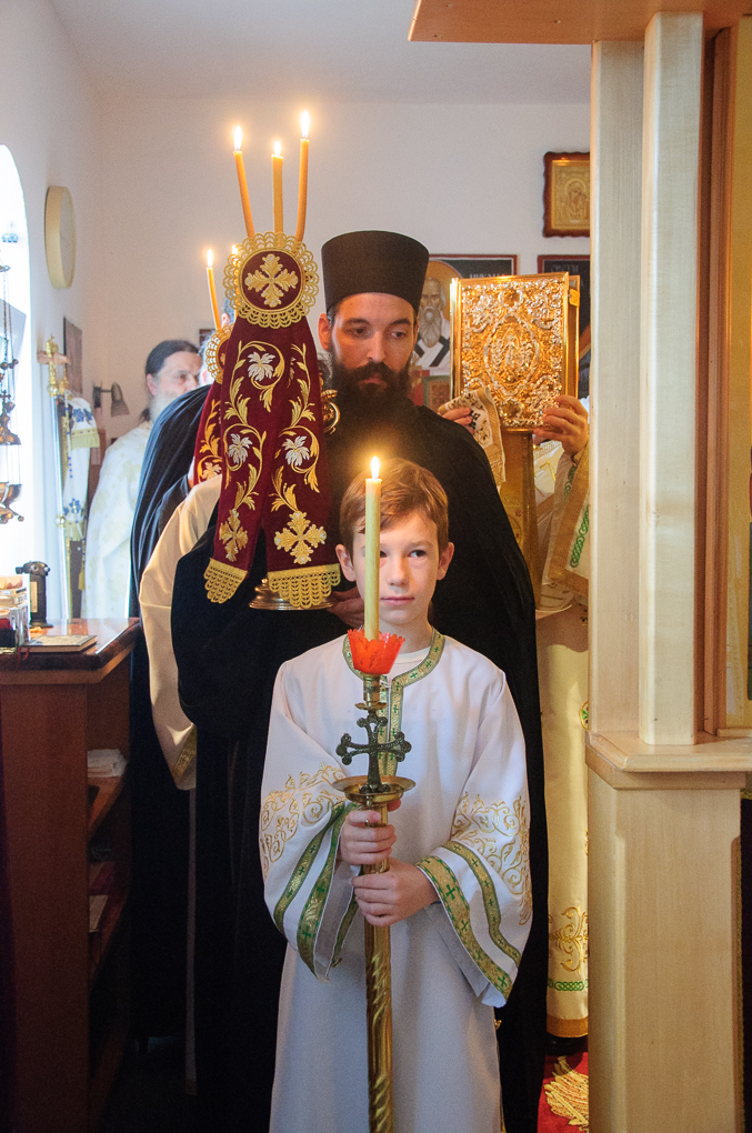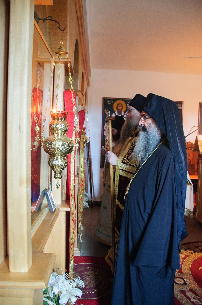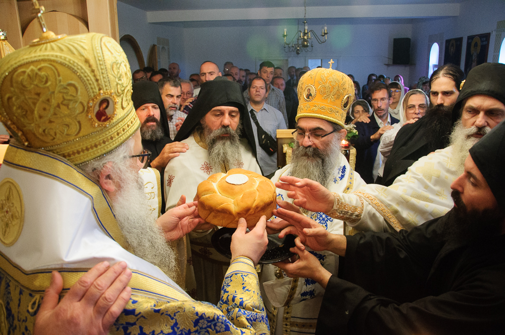 Након Литургије Владика Наум је извршио чин резања славског колача и благосиљања жита које је у част Свете Петке принео славар Свете Петке – Владика Максим.