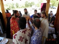 После Свете Литургије, монаштво, верни народ и много мале дечице, причестило се Светим и Животодарним Тајнама Христовим, а мати Варвара је припремила славски колач и жито у спомен Светих Апостола Петра и Павла.
