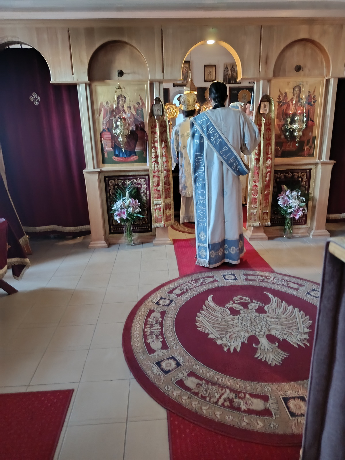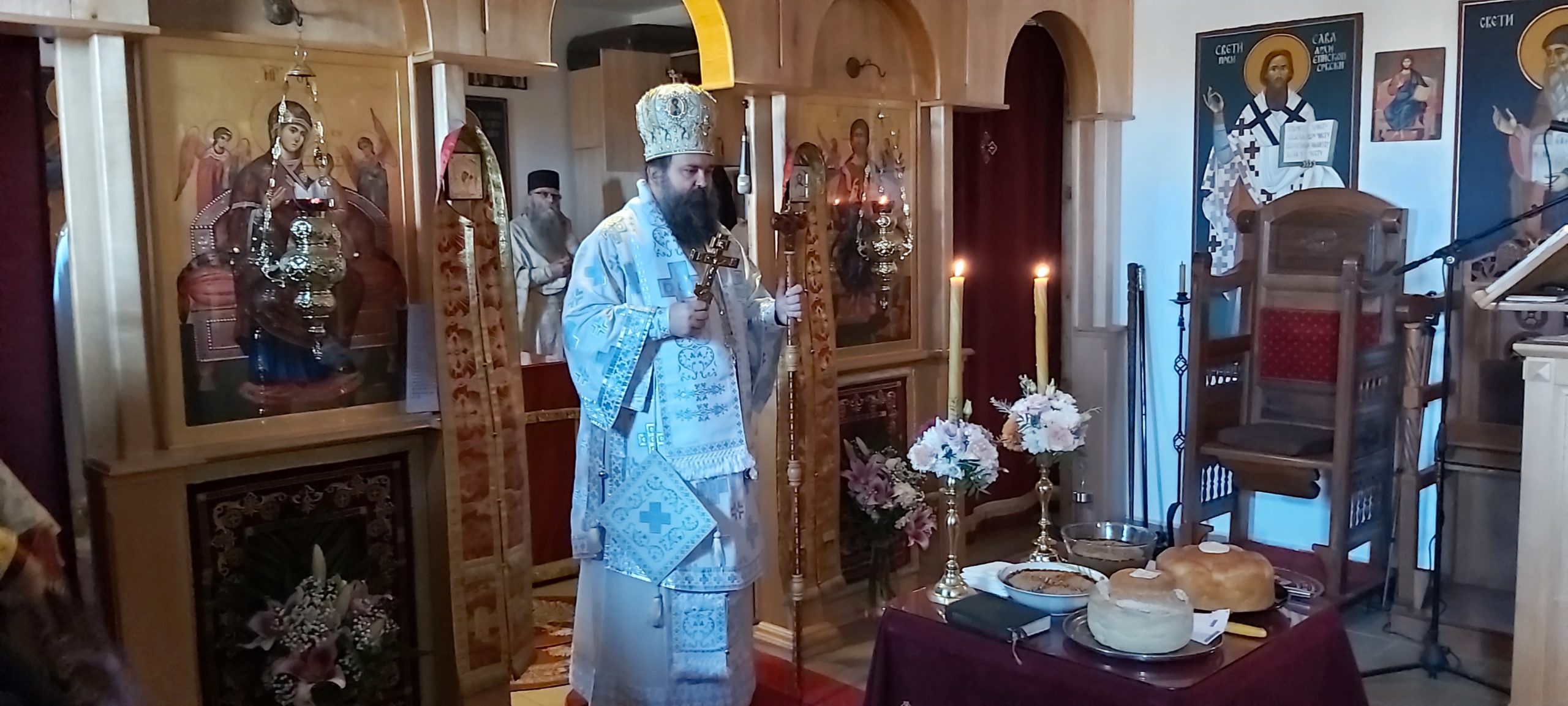 Овај предивни празник је уједно и монашка слава овог манастира, те је владика Ксенофонт извршио чин резања славског колача и благосиљања жита које је у славу и част Пресвете Богородице принео Владика Максим са својим братством, као и: Давор Илић из Петроварадина, Милена Деспотовић из Сомбора и Рајка Бошковић из Београда. За идућу годину пријавили су се: Глишо и Ранка Стојаковић из Лалића, Ђуро и Бранка Шипош из Новог Сада и Данијела Миливојевић из Бачке Тополе.
