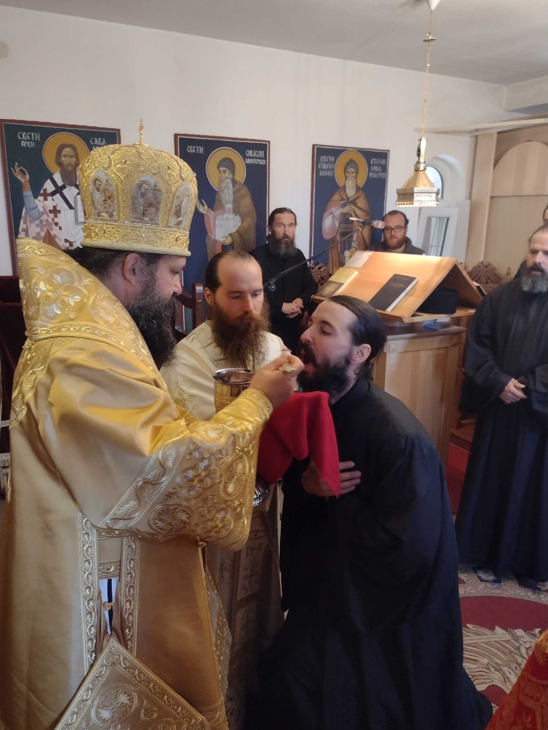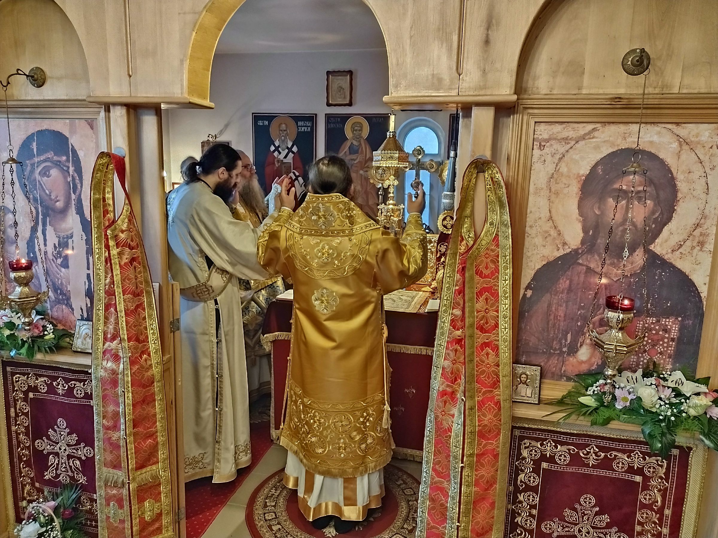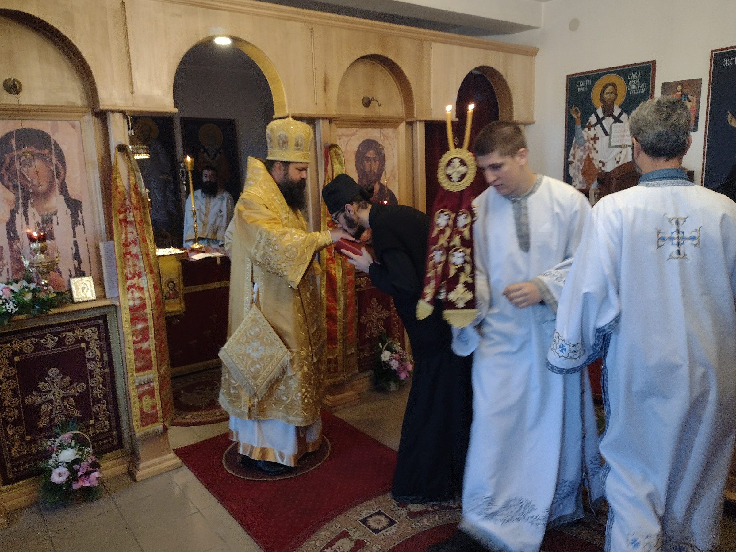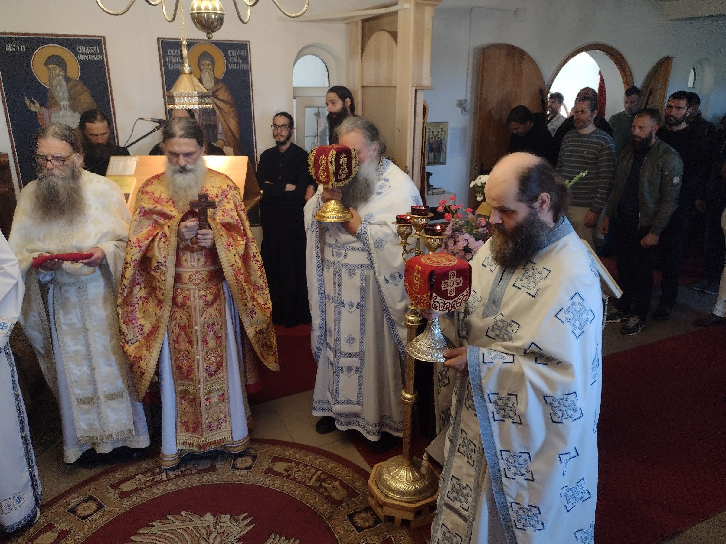 Овај предивни празник је уједно и прва монашка слава овог манастира те је владика Ксенофонт извршио чин резања славског колача и благосиљања жита које је у част празника Покрова Пресвете Богородице принео владика Максим са манастирским братством.