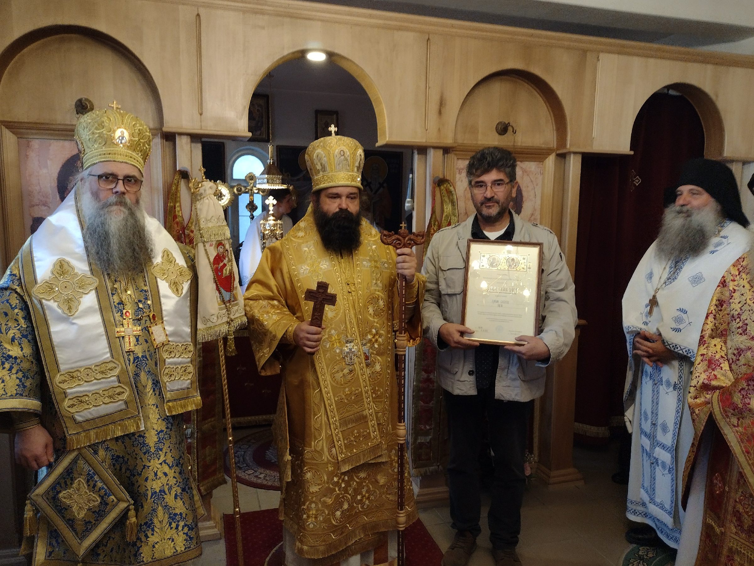 Потом је Владика Ксенофонт уручио захвалницу Урошу Весићу за исказану делатну љубав у борби за очување чистоте светог Православља.