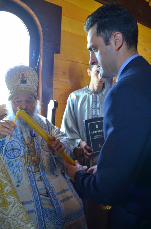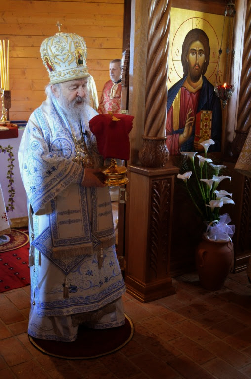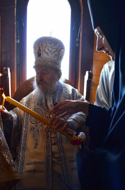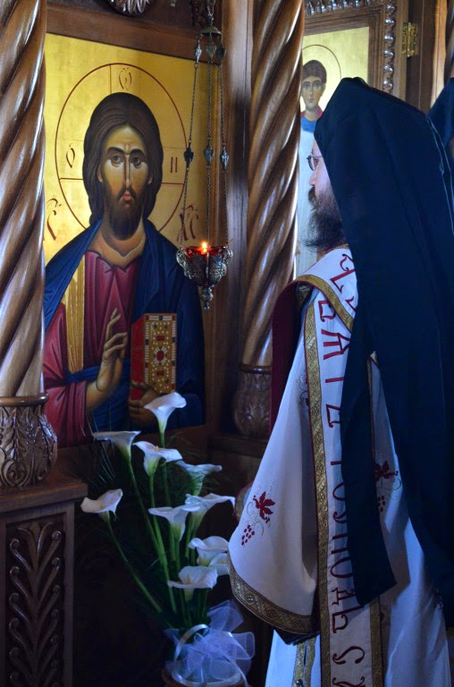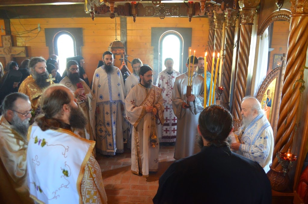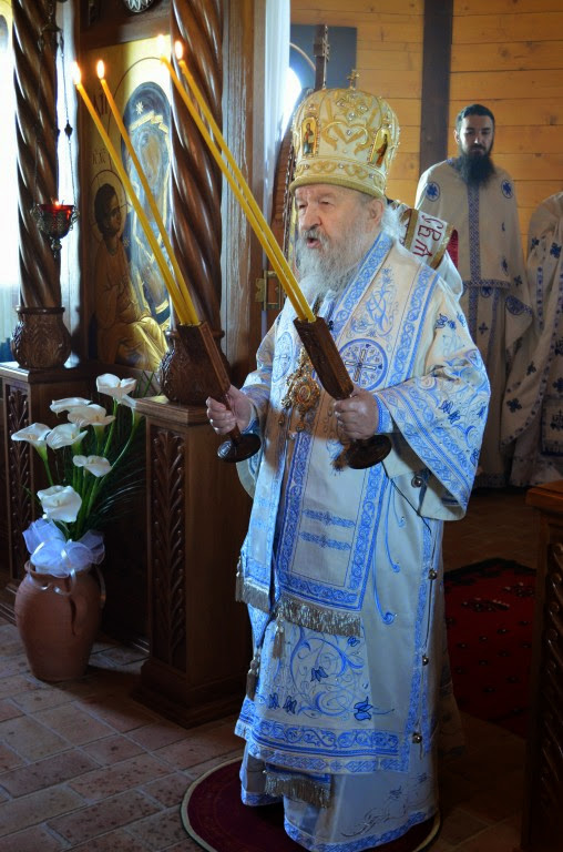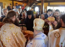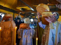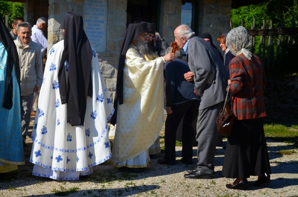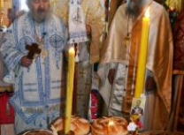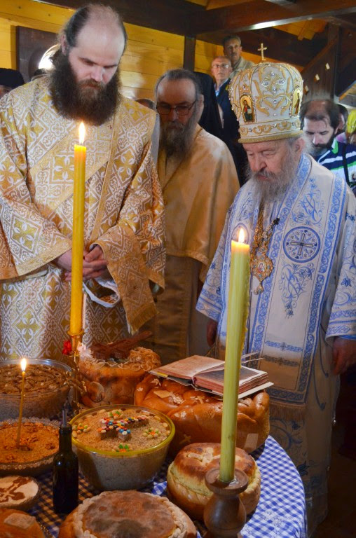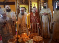 Владика Артемије је извршио чин освећења славских колача и благосиљања кољива, које су поред мати Саре и домаћина, спремили и многи верници који славе овај празник.