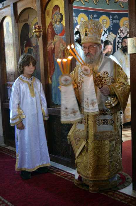 Ипак, особита радост која је овај празник увеличала јесте и жив пример Његовог Преосвештенства, Владике Артемија, који непоколебиво следи пример свог патрона и заштитника светог великомученика Артемија, чије име носи, те смело одстојава у чистом вероисповедању пред земаљским незнабожним и безбожним владарима и властима како световним, тако и црквеним, који покушавају да уруше веру Христову, газећи свете догмате и свете каноне и хулећи на Христа и Цркву Његову.